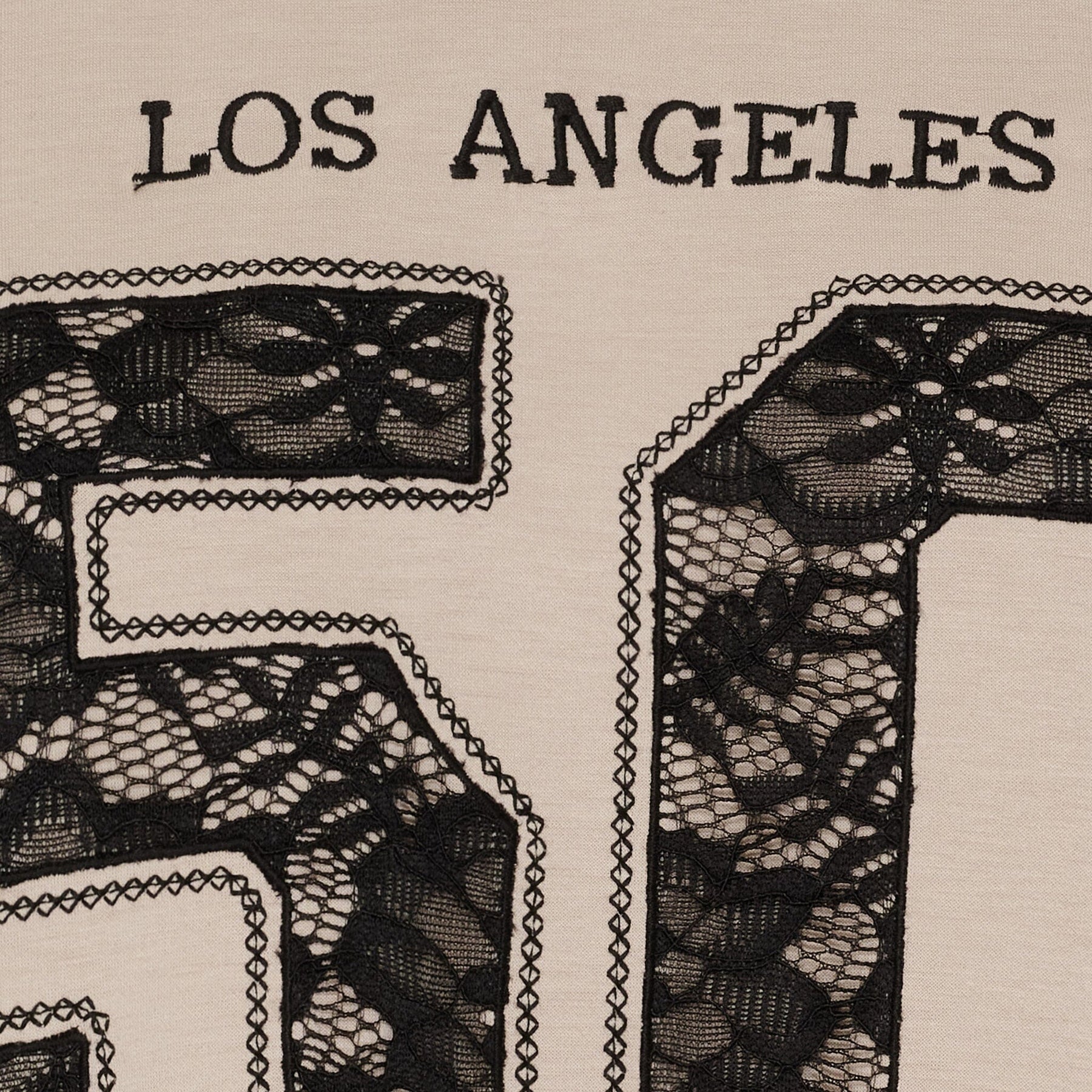 Beige sweatshirt fra Marta Du Chateau med print og blondedetaljer. Sweatshirten har et stort 50-tal på fronten med teksten LOS ANGELES og Champions skrevet nedenunder.