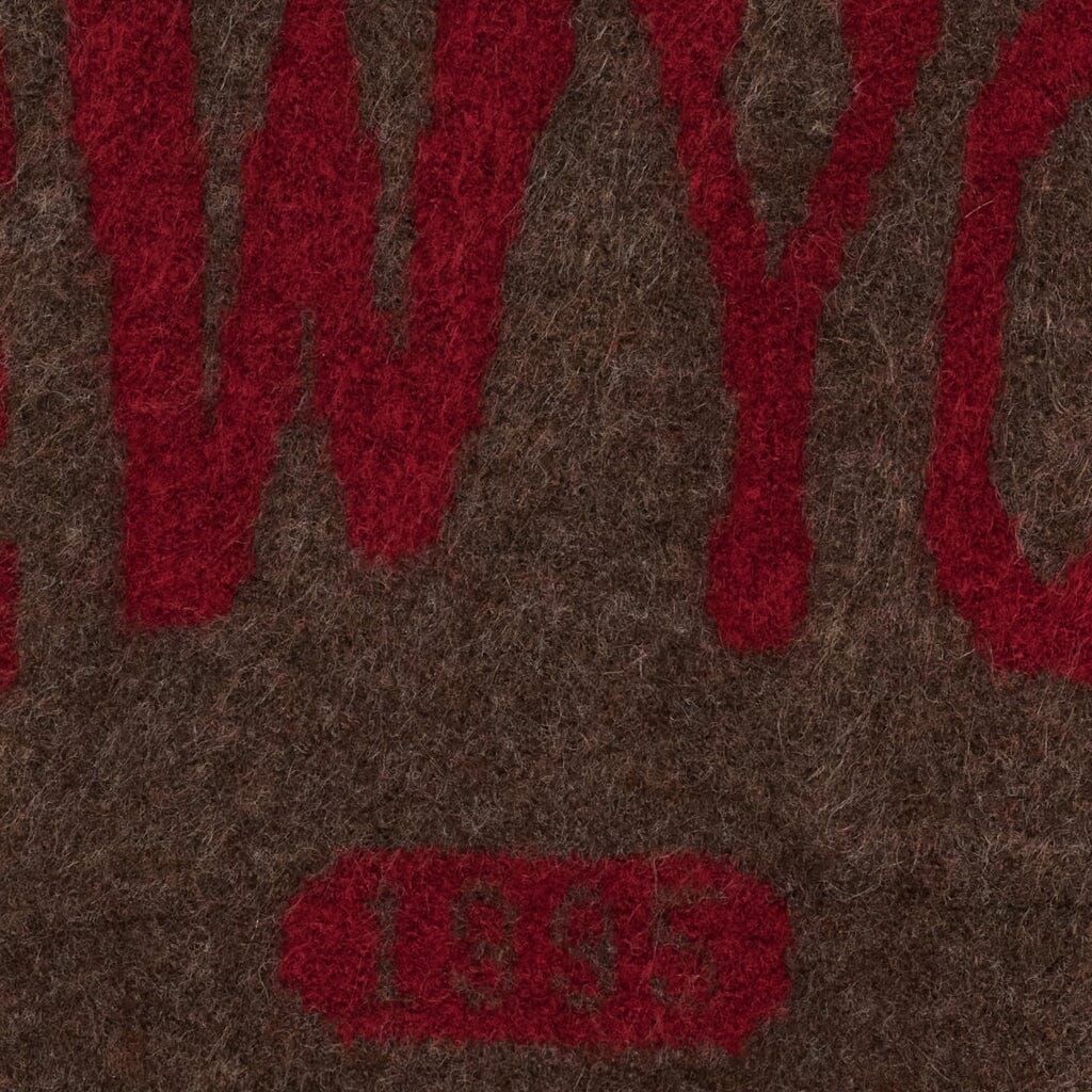 En striktrøje fra Marta Du Chateau i en kombination af brun og bordeauxrød. Trøjen har et marlet mønster med rødt print.