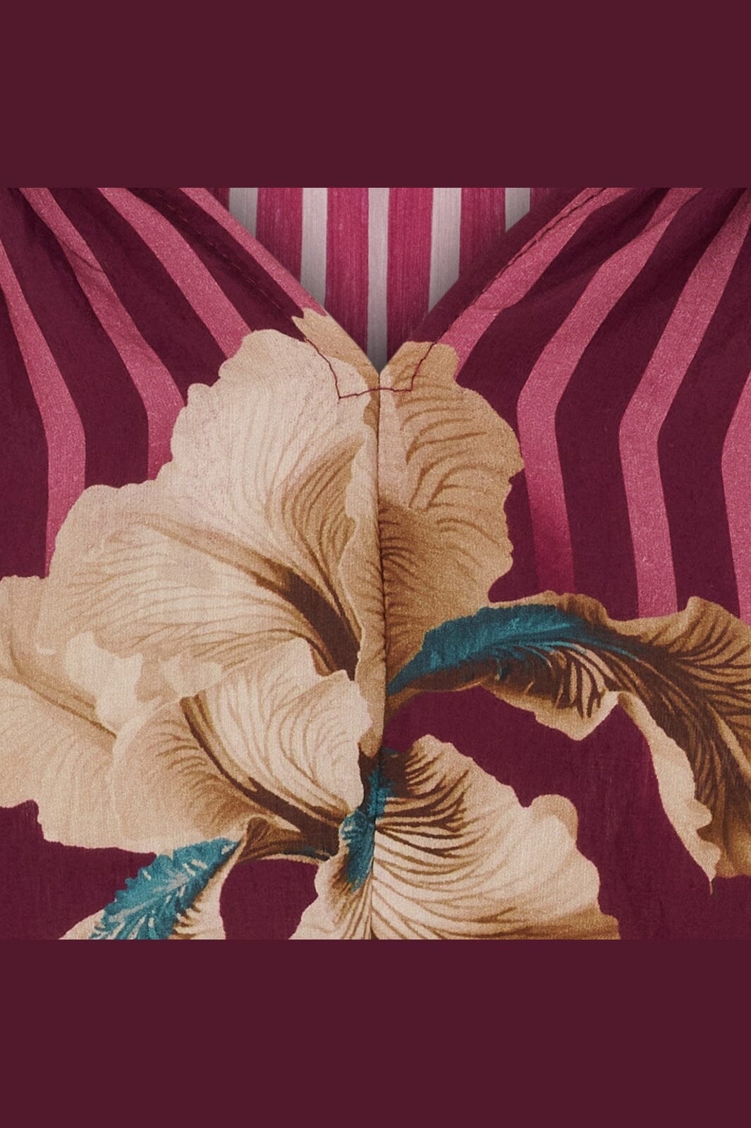 Skjorte fra Marta Du Chateau, lavet af 100 % viskose i en dyb bordeauxnuance med et farverigt blomsterprint i beige og tealtoner.