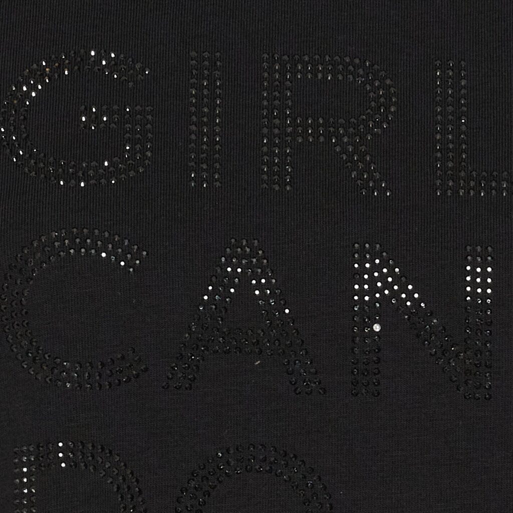 Sort T-shirt fra Marta Du Chateau med teksten GIRLS CAN DO ANYTHING i små, skinnende pailletter på fronten. T-shirten passer til både afslappet hverdagsbrug og hjemmebrug.