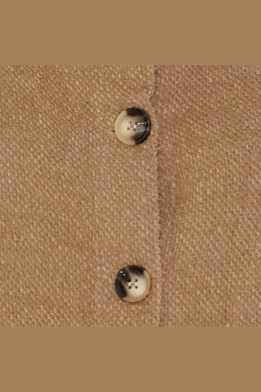 Kamelbrun jakke fra Marta Du Chateau med en løs, kappe-lignende pasform. Jakken har en ensfarvet brun nuance og en afslappet silhuet.