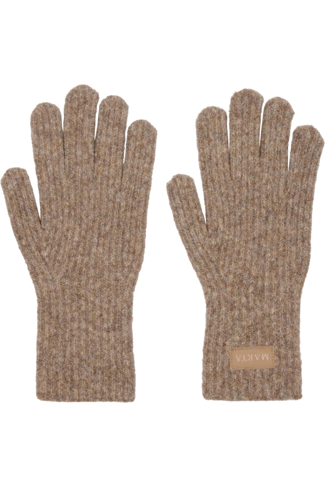 Strikkede handsker fra Marta Du Chateau i en brun og beige nuance. Handskerne har en strikket tekstur med et marlet mønster og et femfingerdesign.