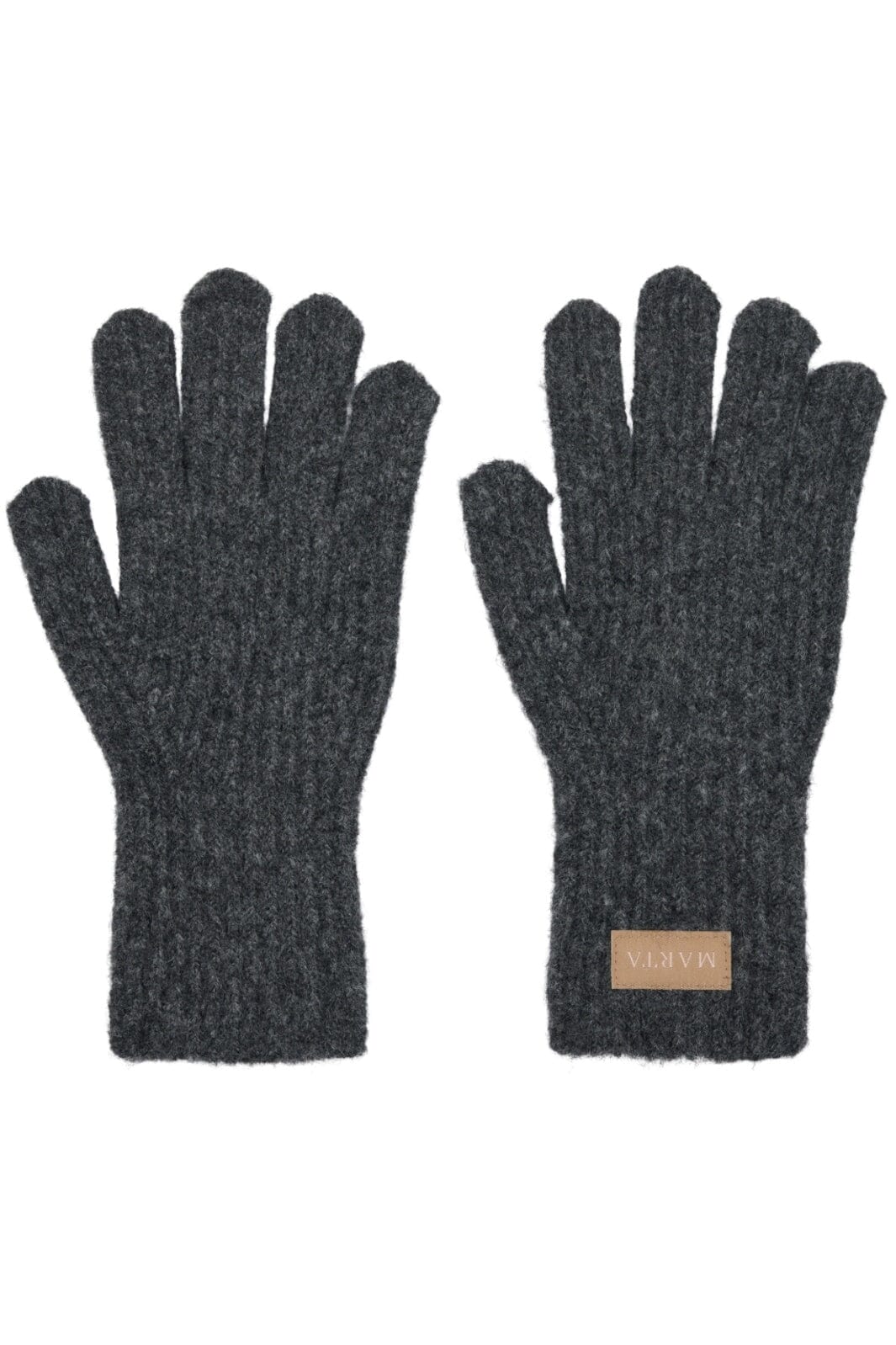 Lysegrå handsker fra Marta Du Chateau med klassisk femfingersdesign. Handskerne har en strikket tekstur og et diskret marl-mønster, der giver struktur til overfladen.