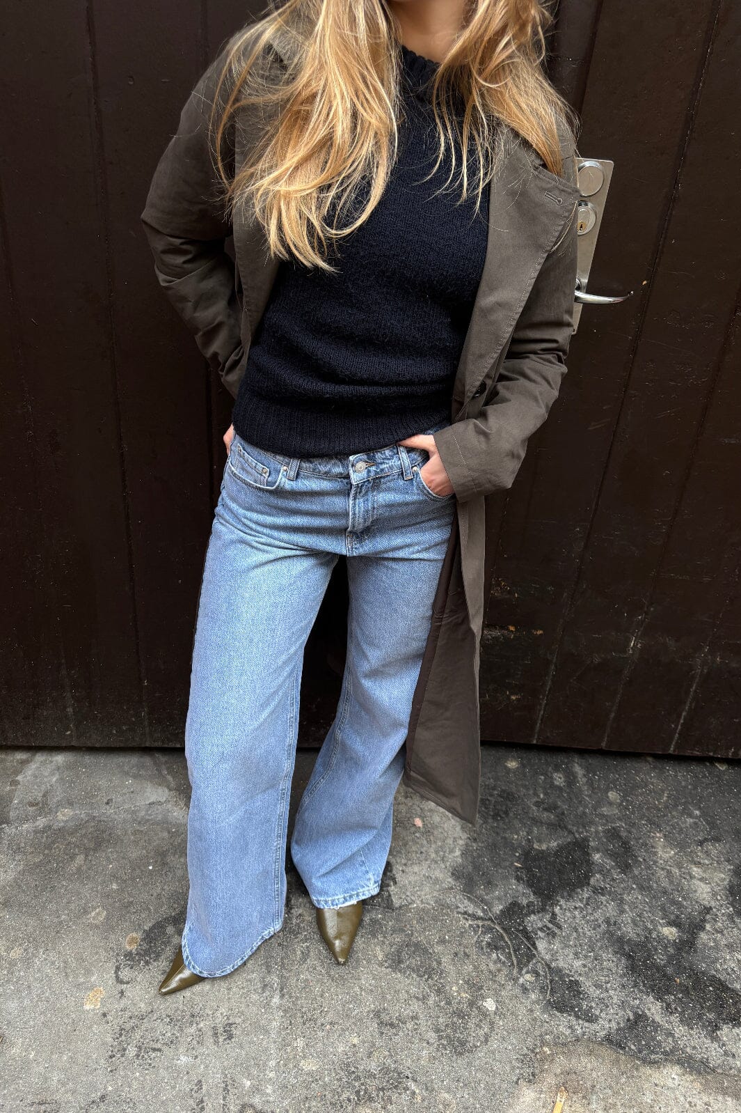 Lyseblå jeans fra MbyM med bred ben-snit og høj talje. Bukserne har en løs pasform og er lavet af 100 % bomuld.