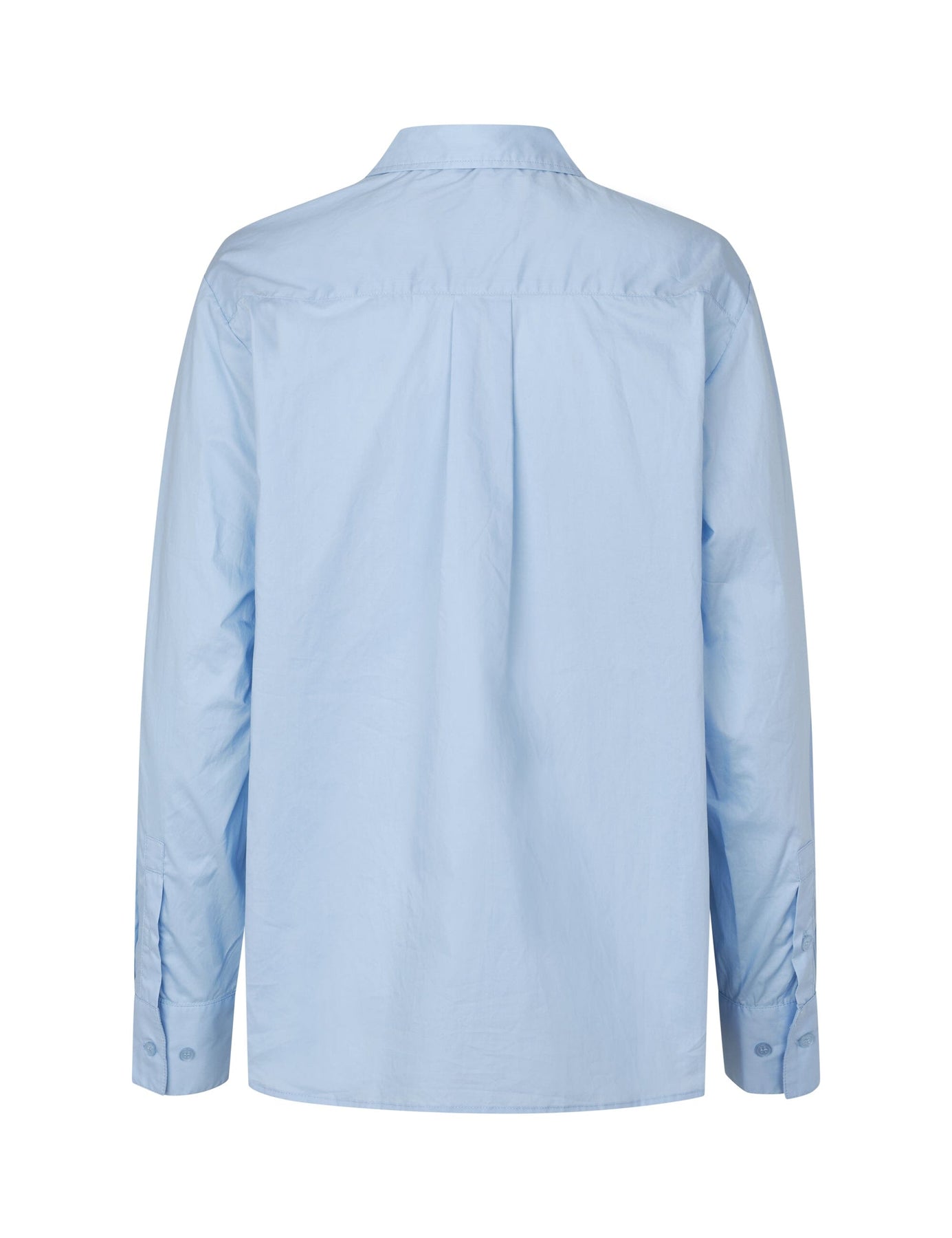 Lyseblå skjorte fra MbyM, lavet af 100 % bomuld. Skjorten har en løs pasform, lange ærmer og en knaplukning foran.