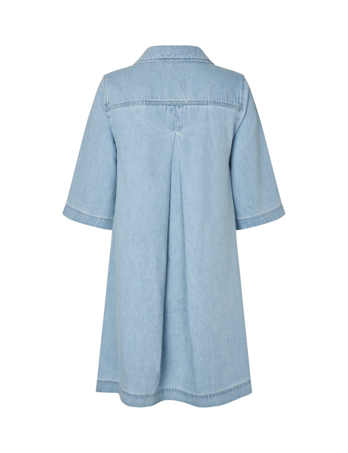 En lyseblå denimkjole fra MbyM i en blød vask. Kjolen har en oversized pasform med korte ærmer og en lårkort længde.
