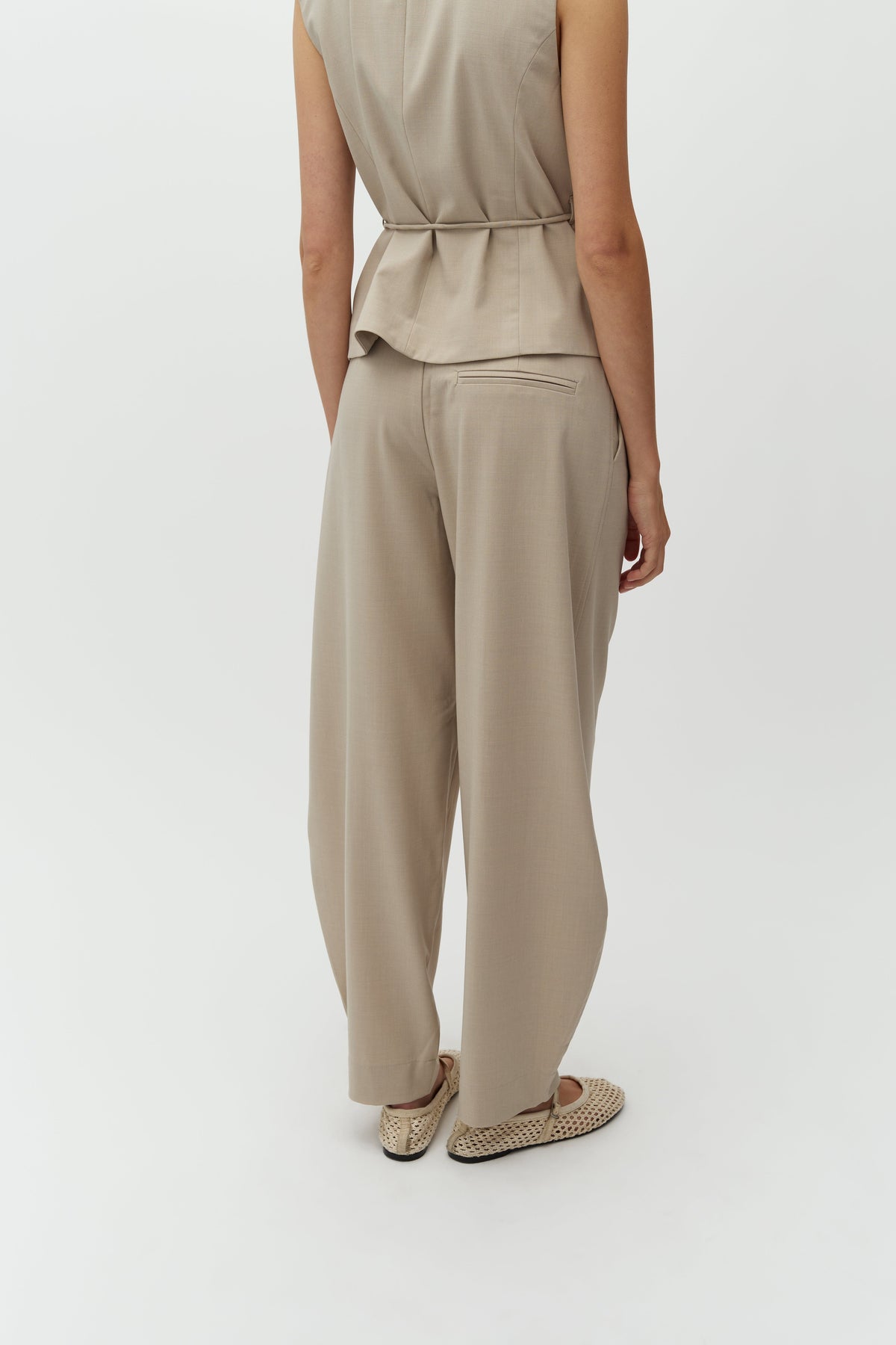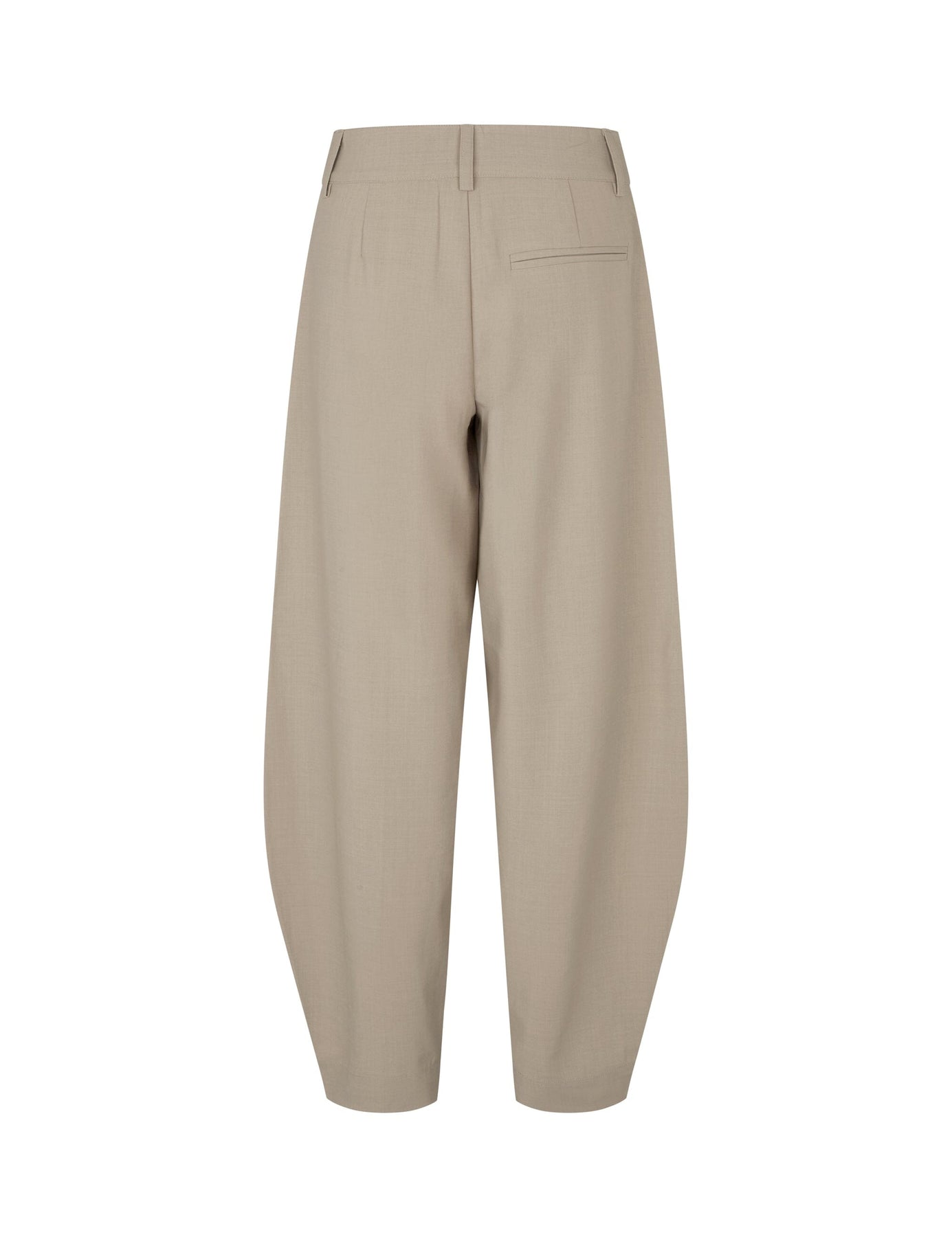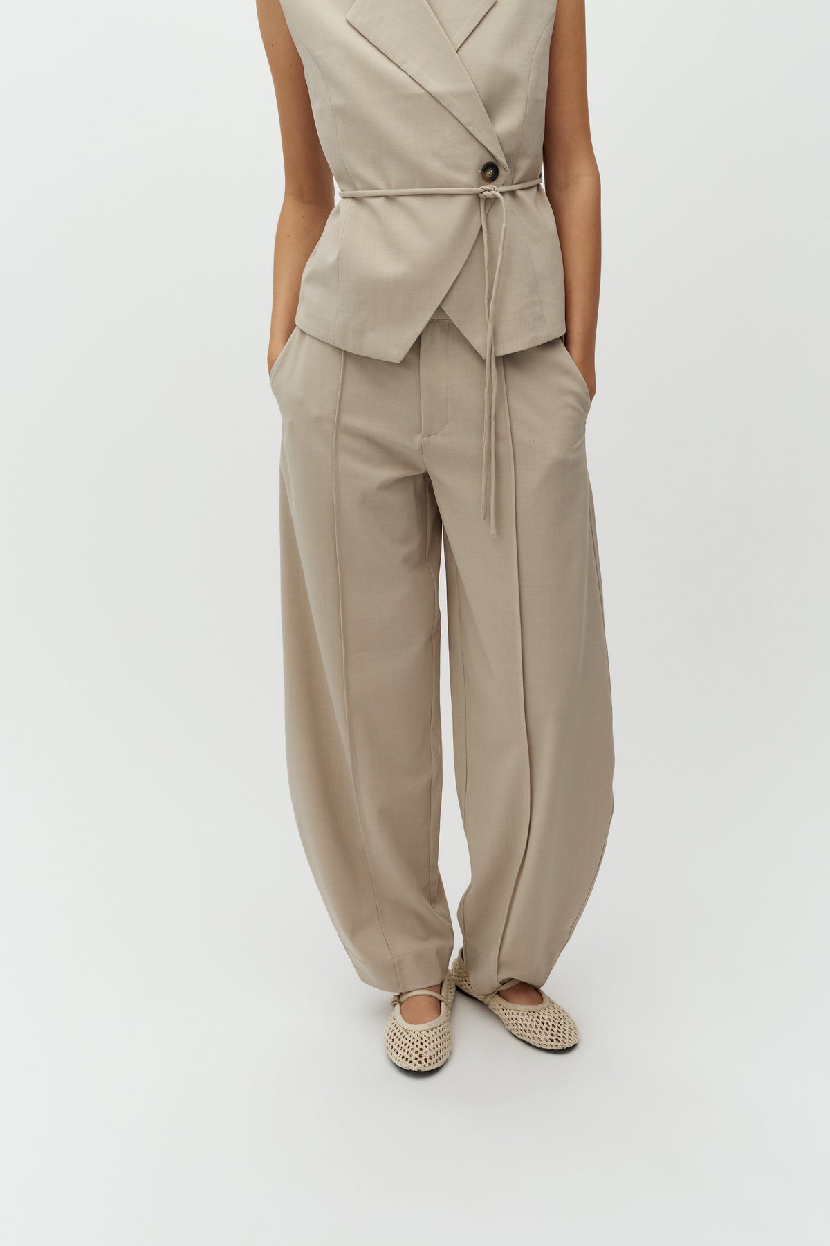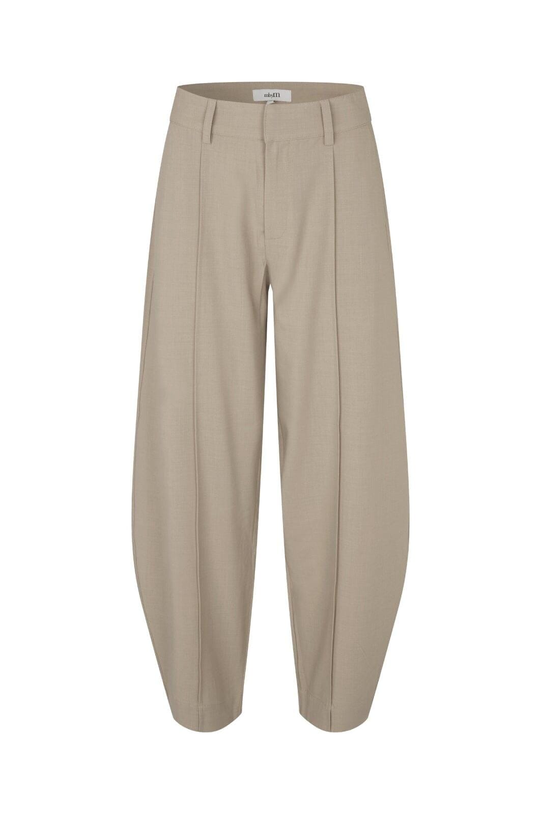 Bukser fra MbyM i lys sand. Bukserne har en høj talje og en løs pasform med dekorative syninger og snøre detaljer.
