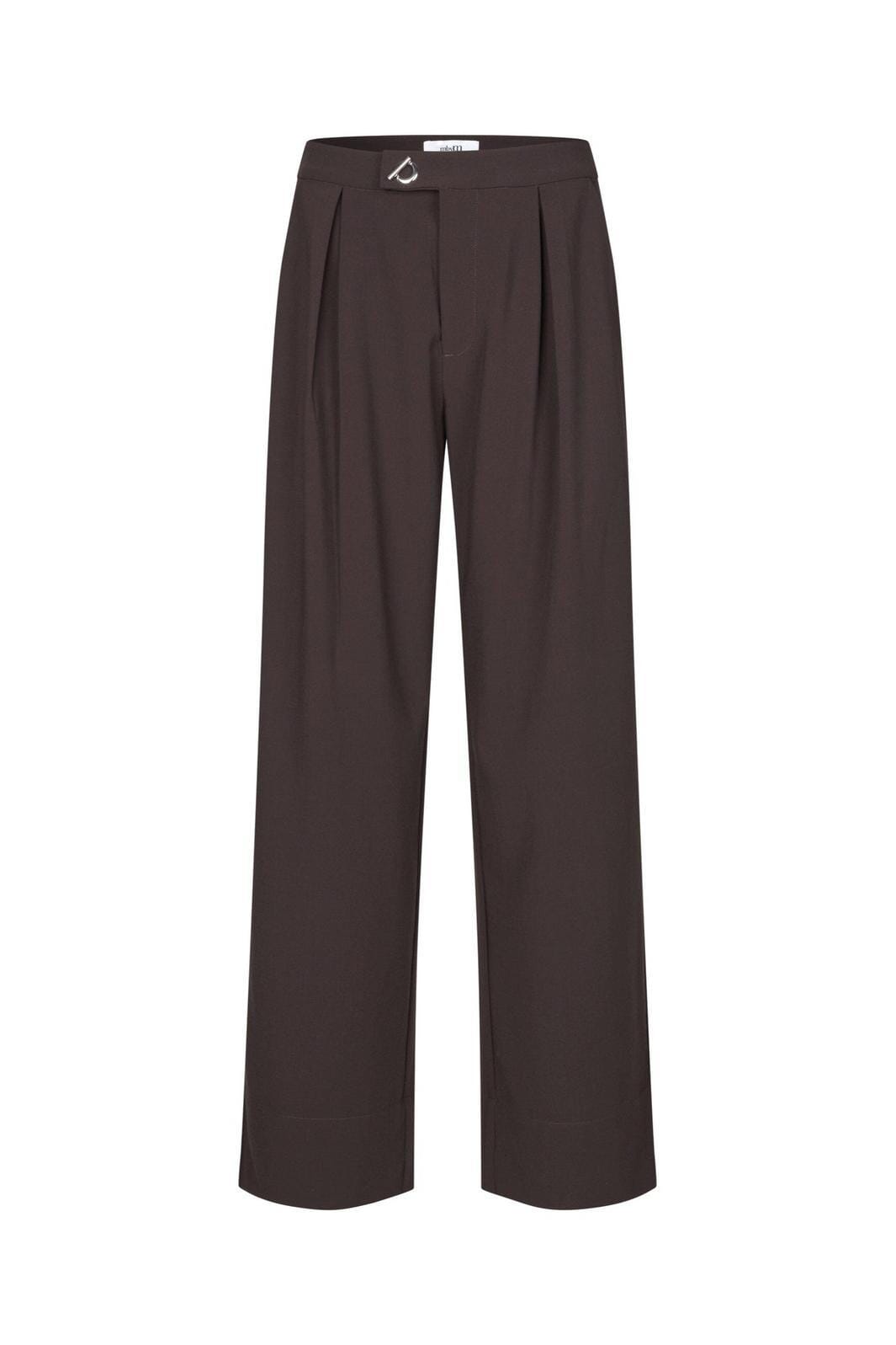 Brune bukser fra MbyM med brede ben. Bukserne har høj talje og gulvlængde, og de passer til både afslappede og formelle lejligheder.