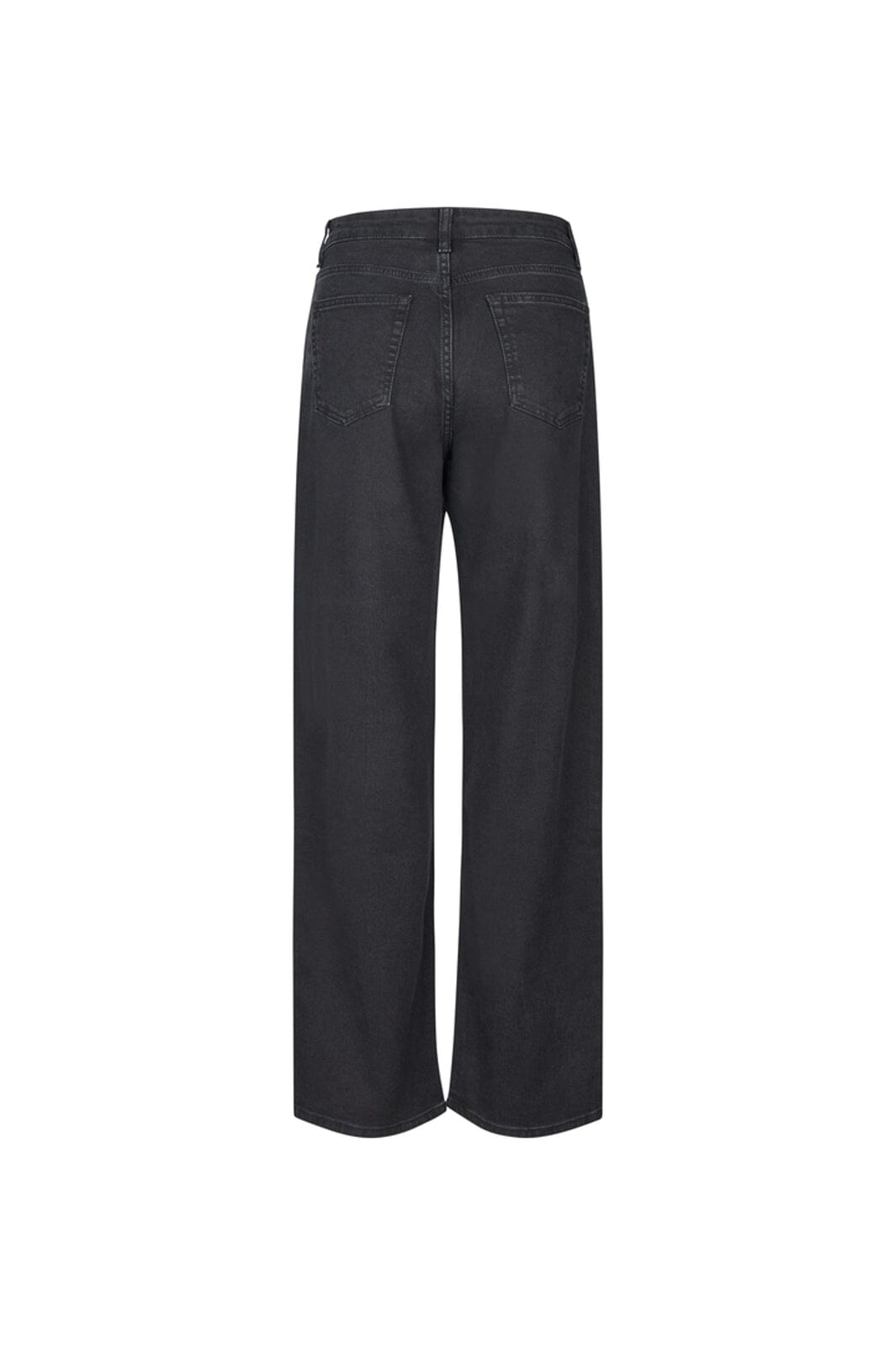 Sorte bukser fra MbyM, lavet af bomuld med en lille andel elastan. Bukserne har en løs pasform og lange ben.