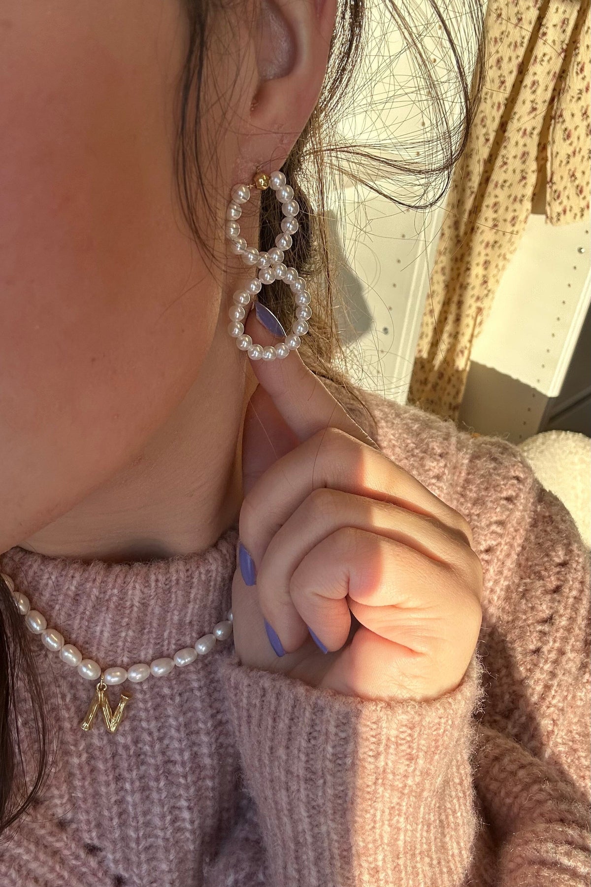 Et ideelt valg for dem, der værdsætter subtil elegance og ønsker at tilføje en smule glans til deres daglige stil. Model: Mellow Moon - 8-Tal Ørering Med Perler.