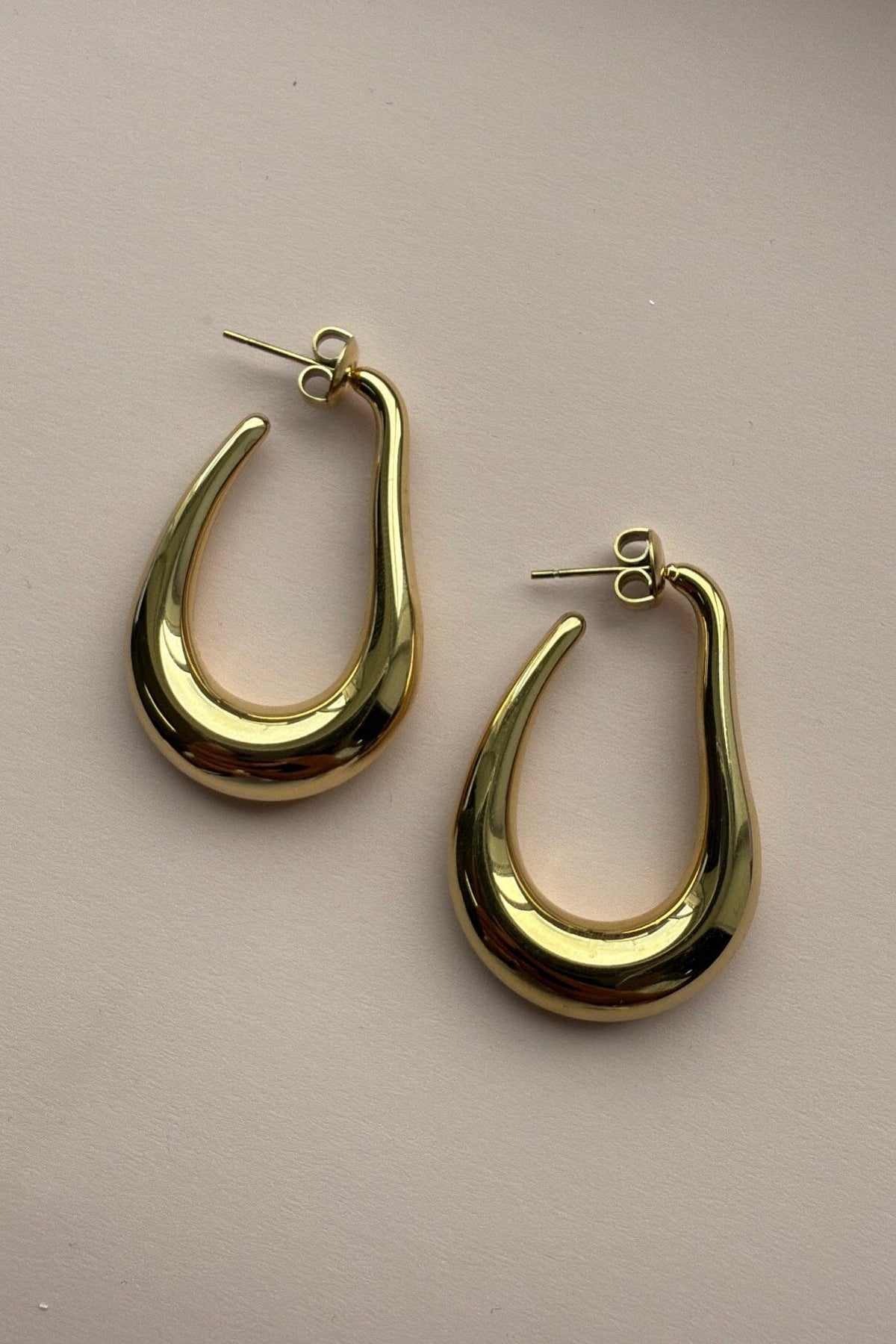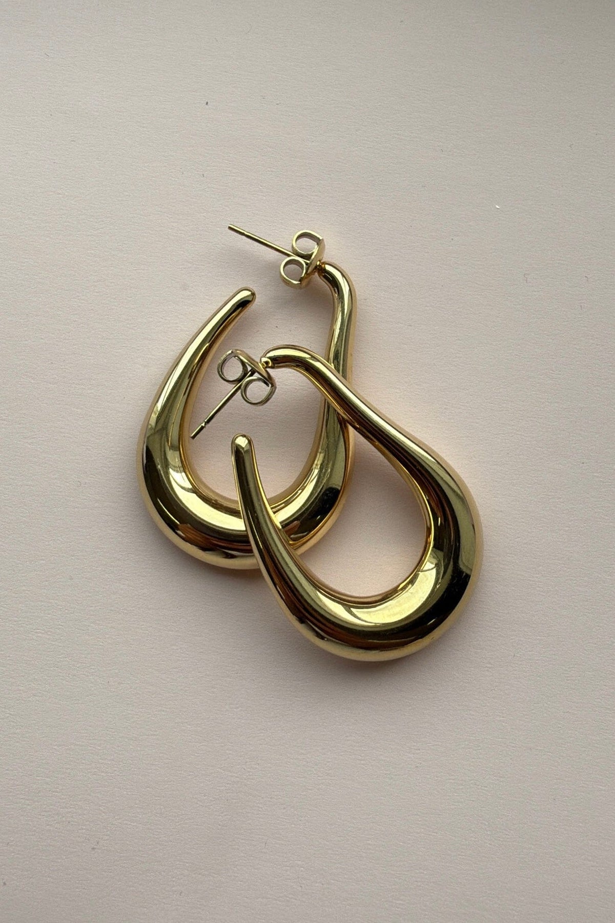 Gyldne øreringe fra Mellow Moon med en buet form og glat overflade. Øreringene har en poleret finish, der giver et blankt udtryk.