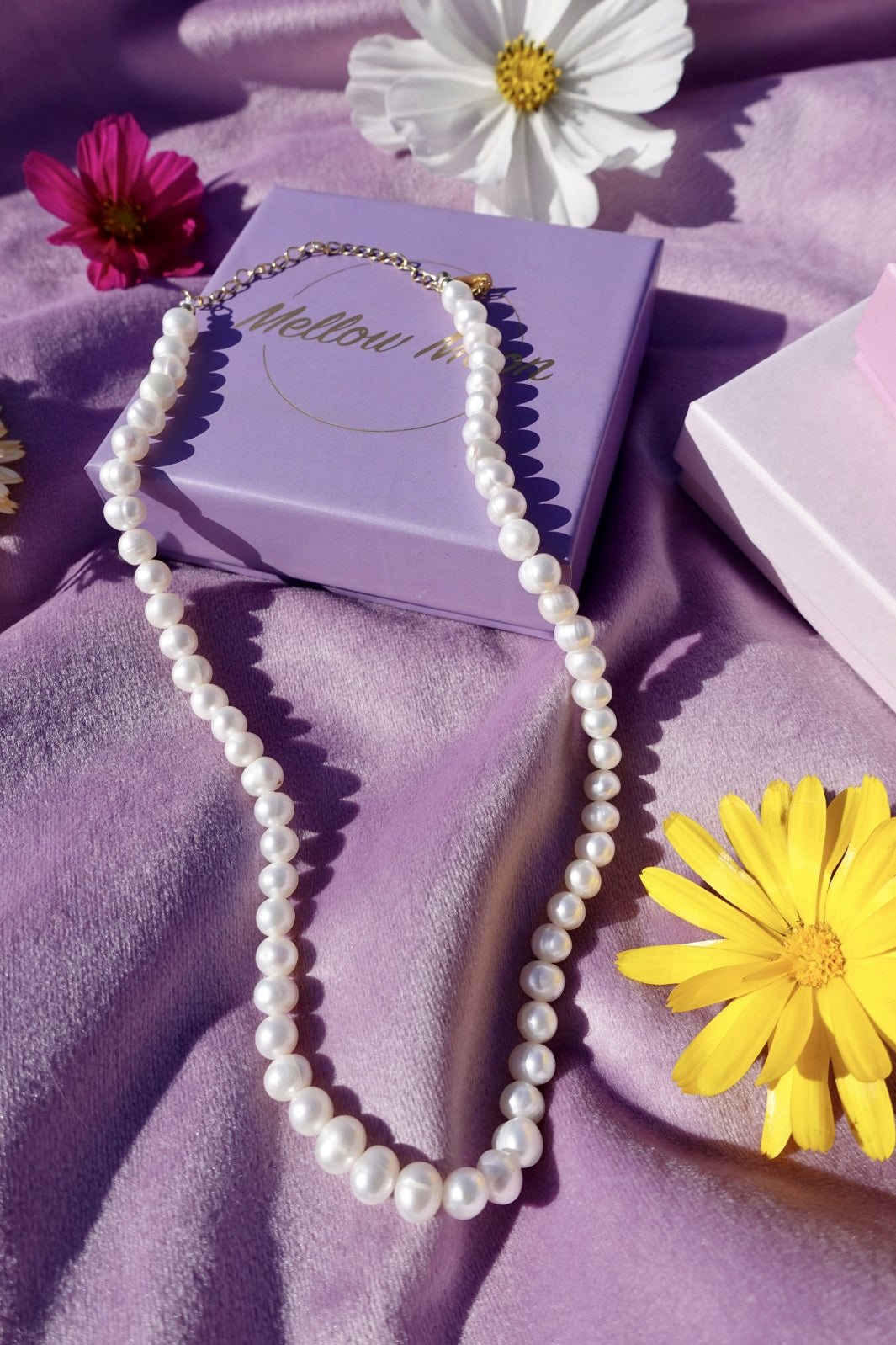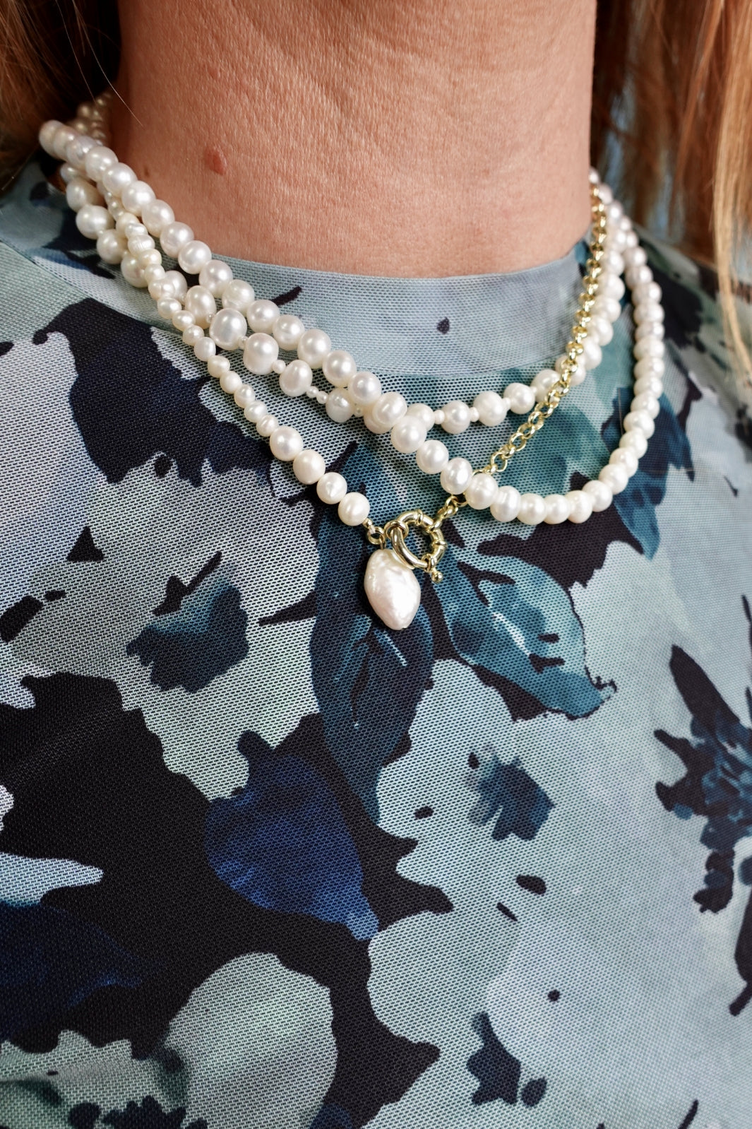 Mellow Moon Halskæde Med Hvide Perler Farve: Forgyldt