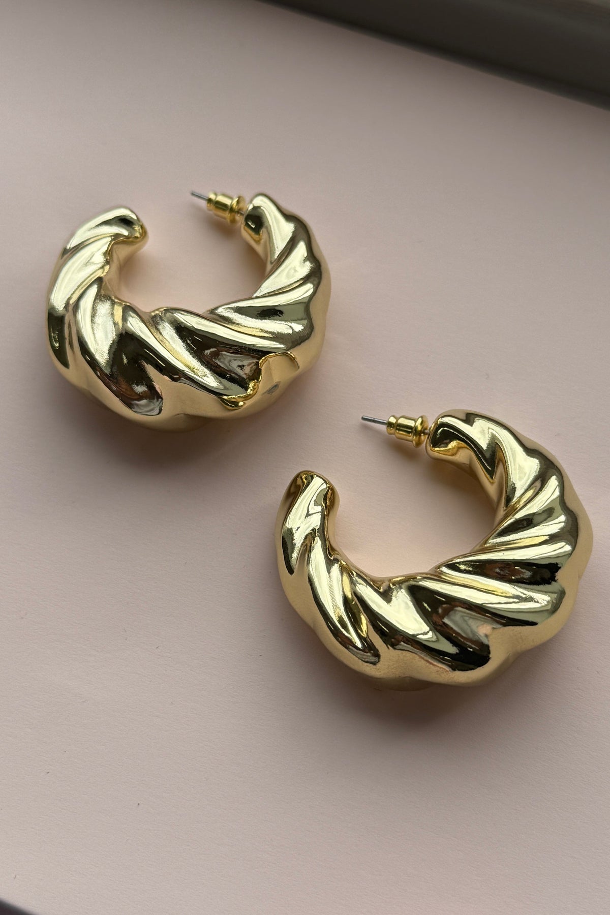 Forgyldt ørering fra Mellow Moon med et roseformet design. Øreringen er lavet af rustfrit stål med en gylden overflade, der giver et blankt og holdbart udtryk.
