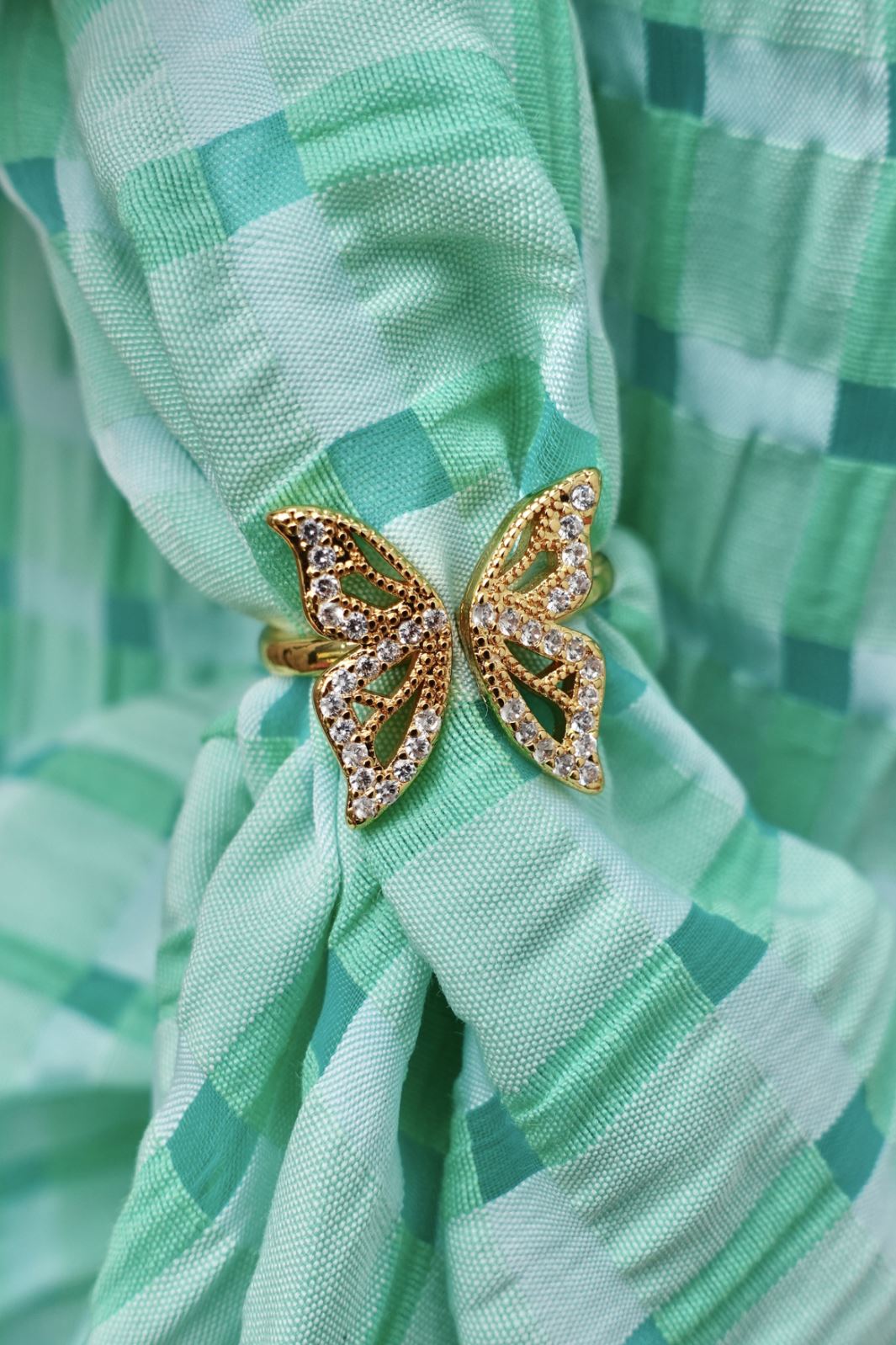 Smuk justerbar forgyldt sommerfugl ring fra Mellow Moon med små sten.