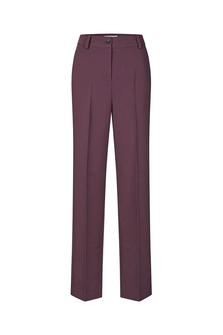Bukser fra Modström i en dyb lilla nuance. De har lige, vide ben med pressefolder og en løs pasform, der giver god bevægelsesfrihed.