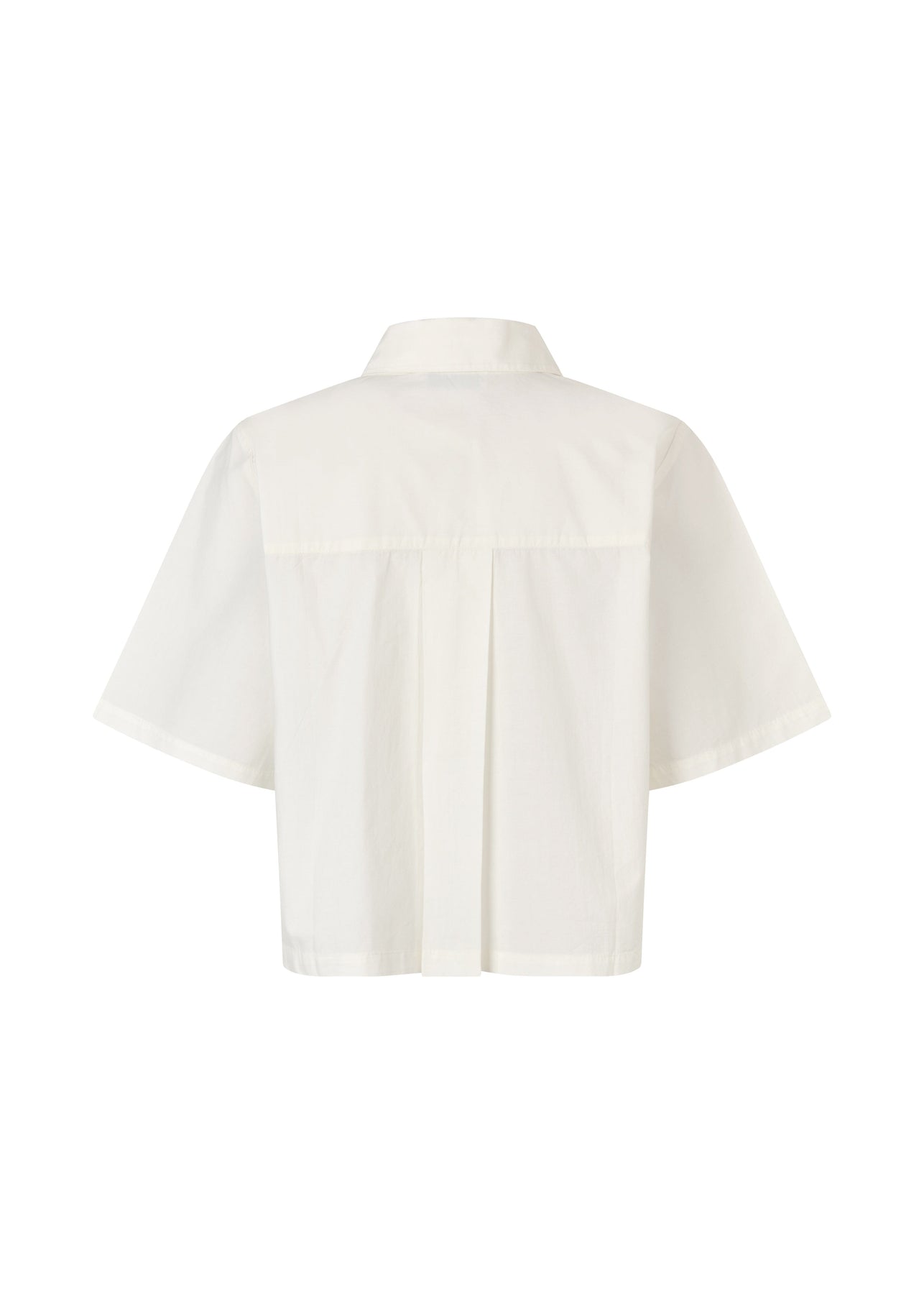 Hvid skjorte fra Modström, lavet af 100 % økologisk bomuld. Skjorten har en klassisk krave, knaplukning, korte ærmer og en brystlomme.