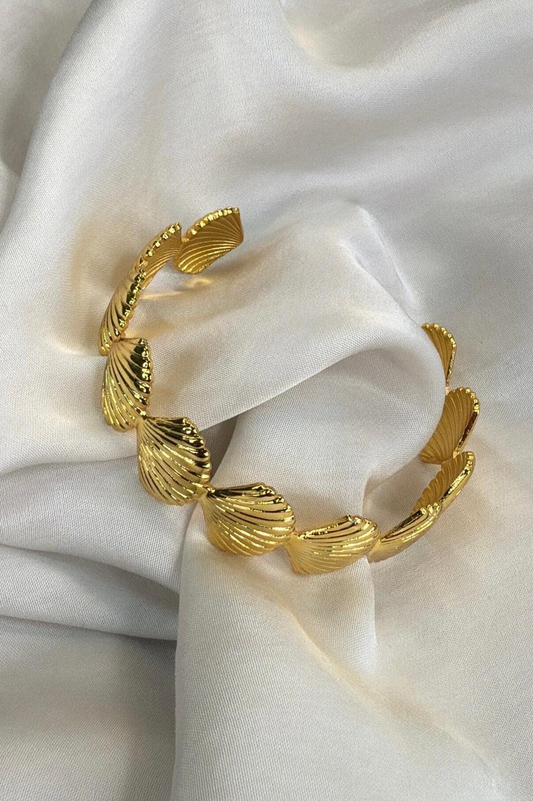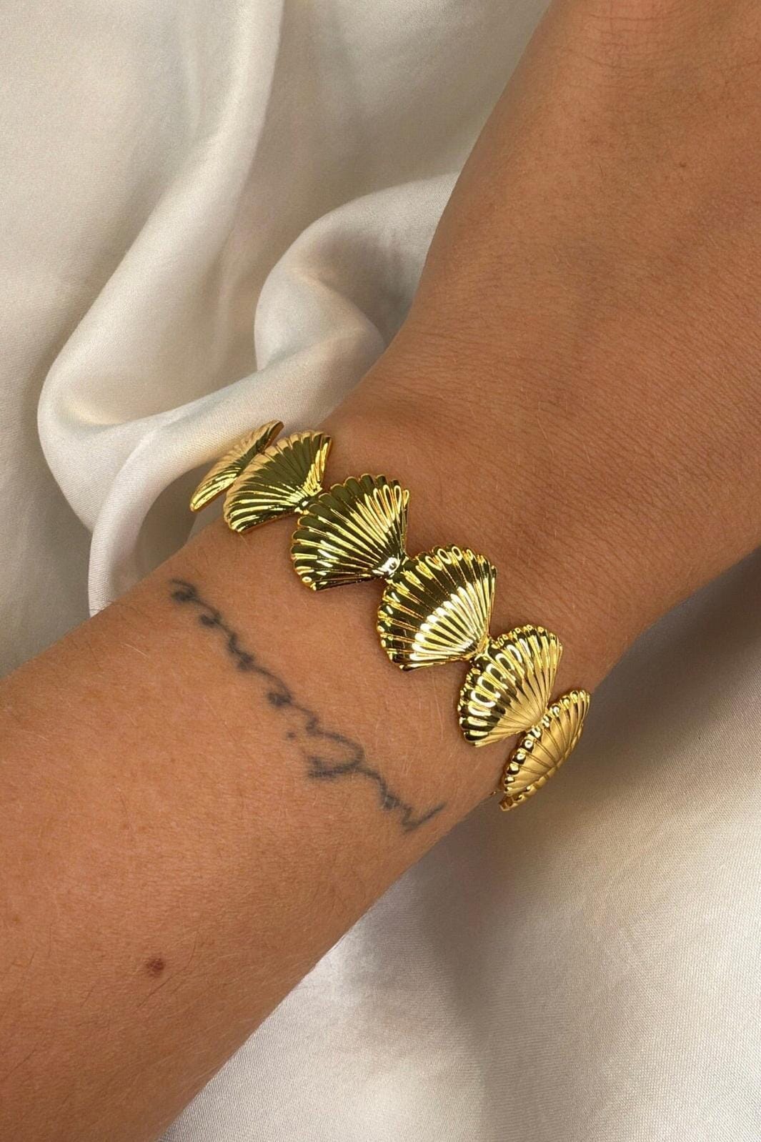 Forgyldt armbånd fra Molly&My Jewellery med skaldformede led. Armbåndet er lavet af messing og har en skinnende gylden farve.