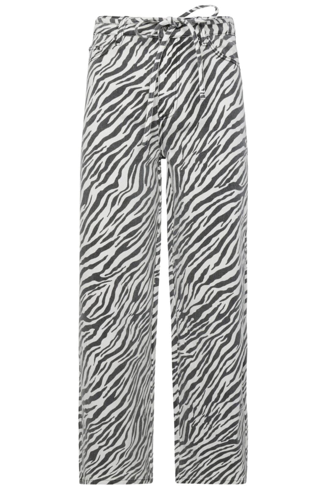 Jeans fra Moves By Minimum med zebra-mønster i sort og hvid. Bukserne har en snøredetalje i taljen og ankellængde med regular fit.