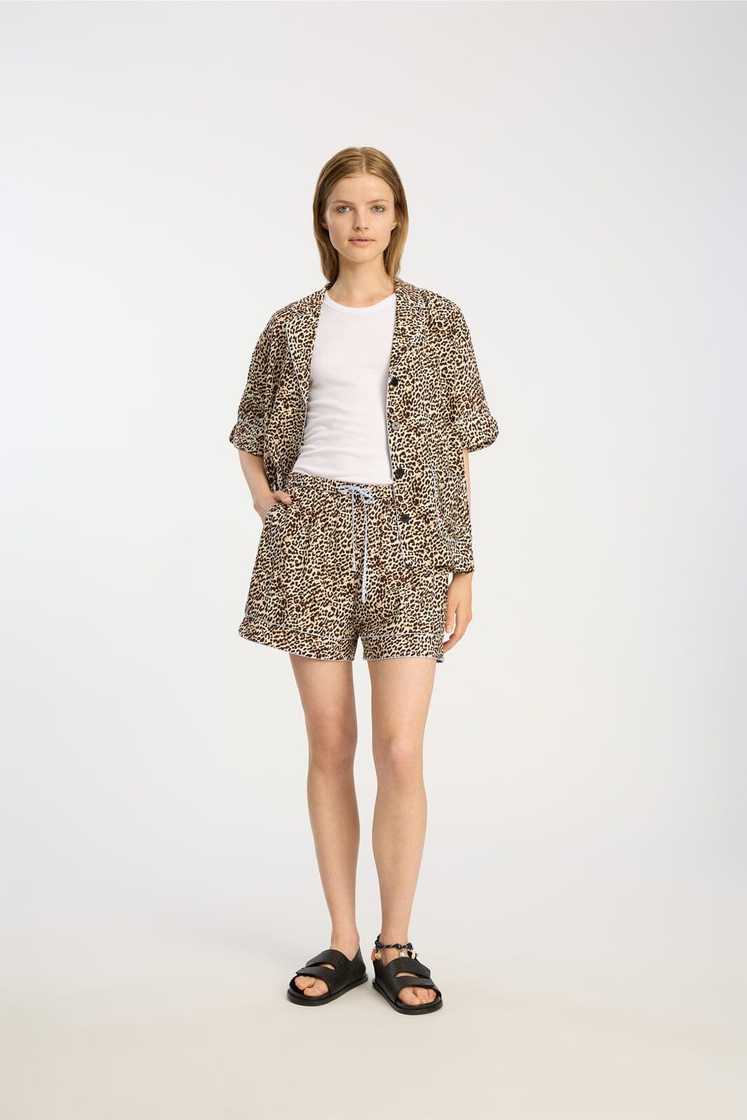 Shorts fra Munthe med leopardprint i brune og beige nuancer. Shortsene har en afslappet pasform og når til midt på låret.
