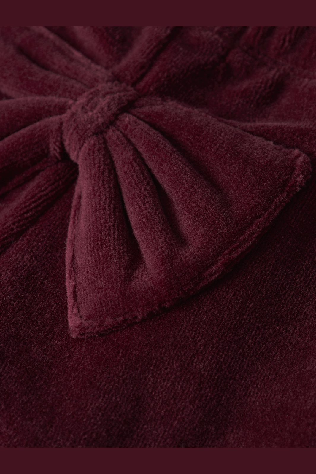 Velourleggings i en dyb bordeauxfarve. Lavet af blød velour med en dekorativ sløjfe på bagsiden. Den elastiske talje giver en god pasform.