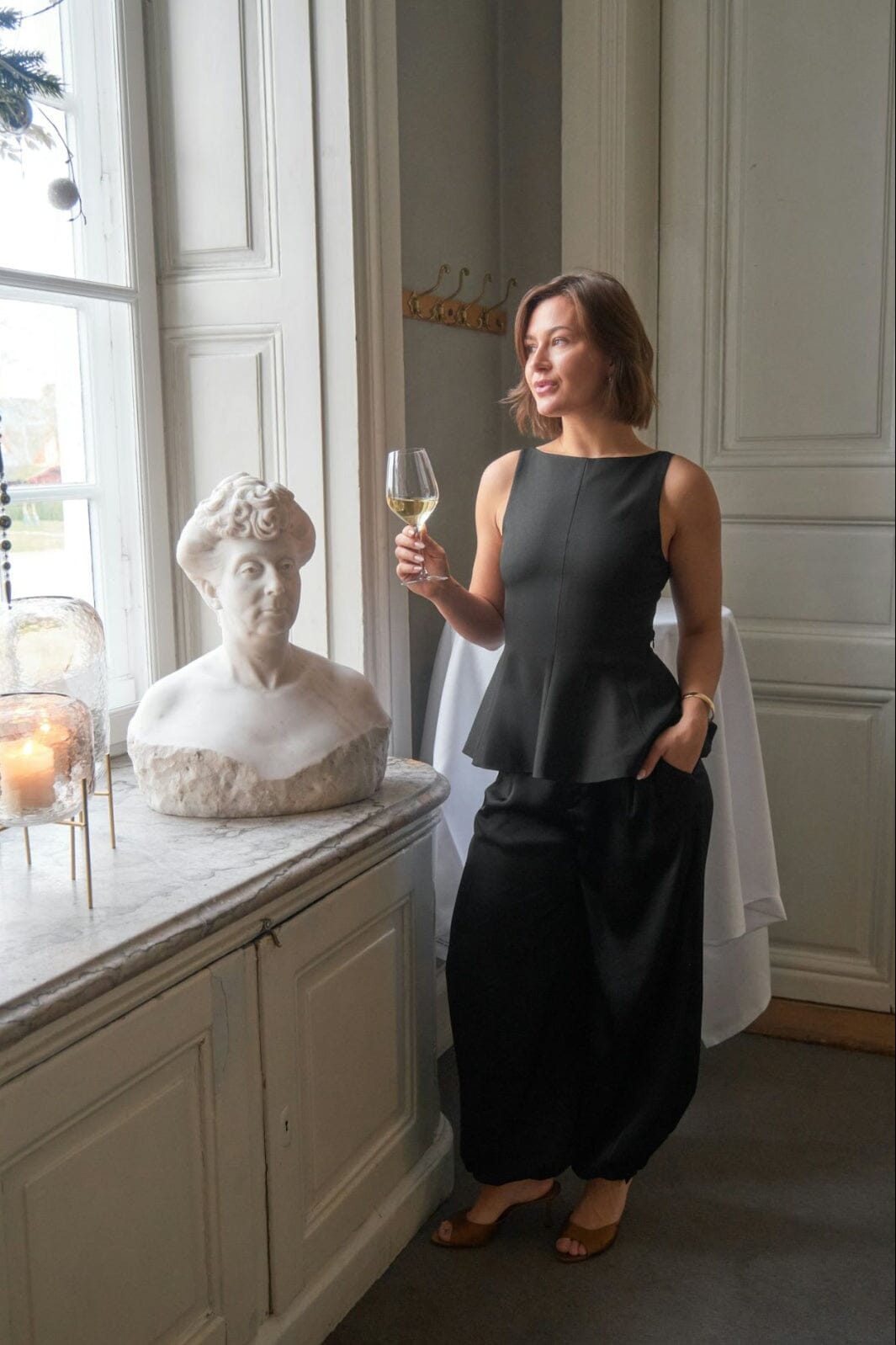 Sort top fra Neo Noir med firkantet halsudskæring. Toppen har en tætsiddende pasform med vidde forneden og bindes med en sløjfe på ryggen.