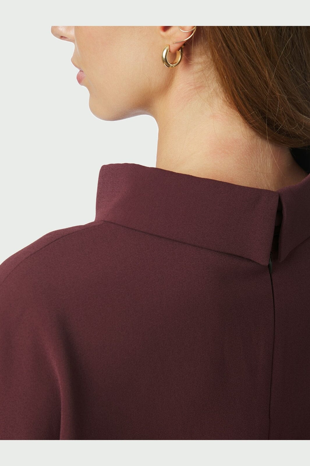 Bordeauxfarvet jumpsuit fra Neo Noir i blød crepe-kvalitet. Den har brede ben, praktiske lommer og en høj halsudskæring. Lynlåslukningen i ryggen gør den nem at tage af og på.