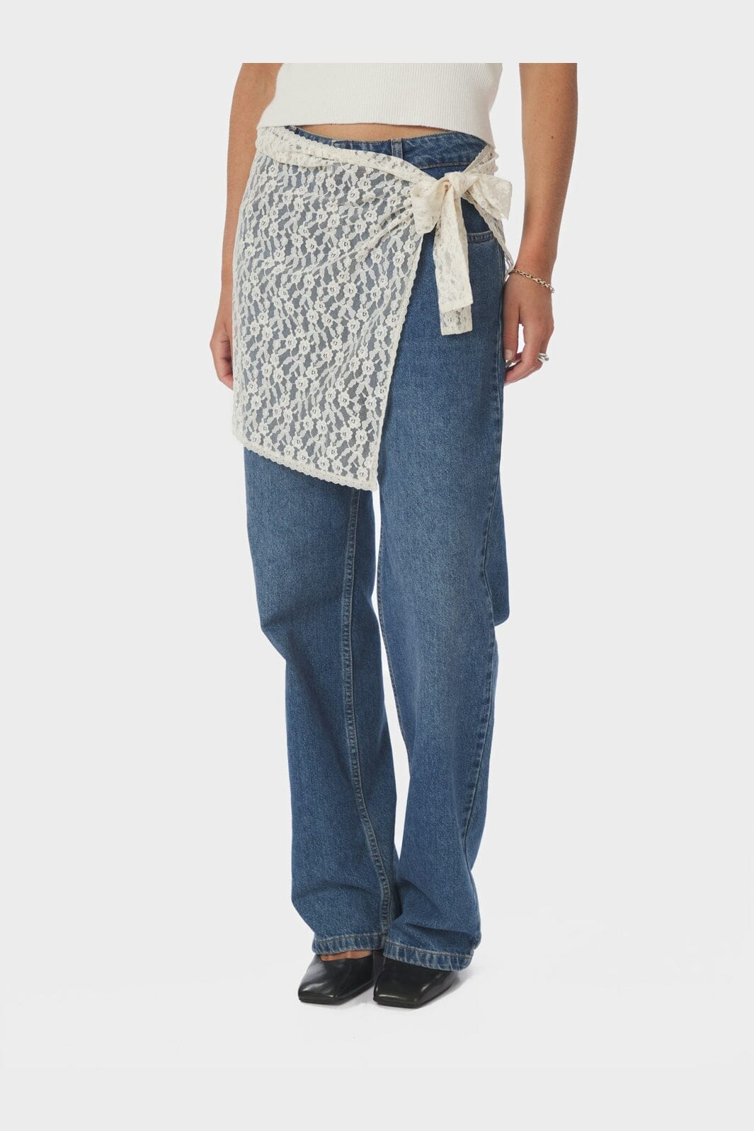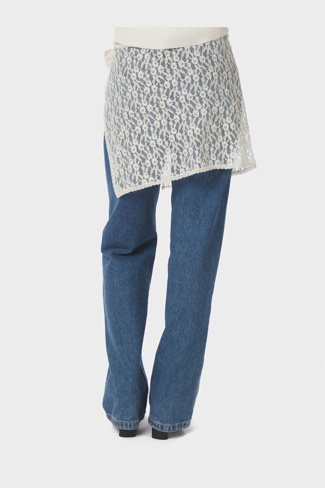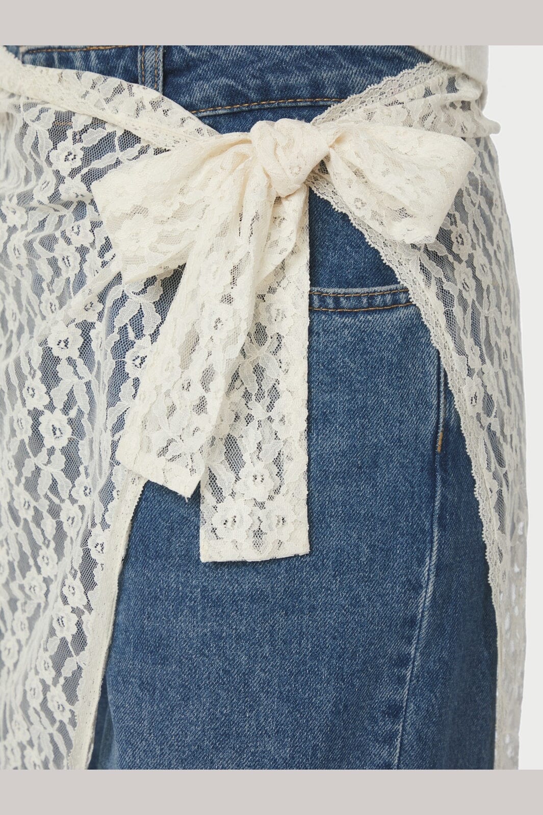 Slå-om-nederdel fra Neo Noir i cremefarvet blonde. Nederdelen har et blomstret mønster og bindes i siden.