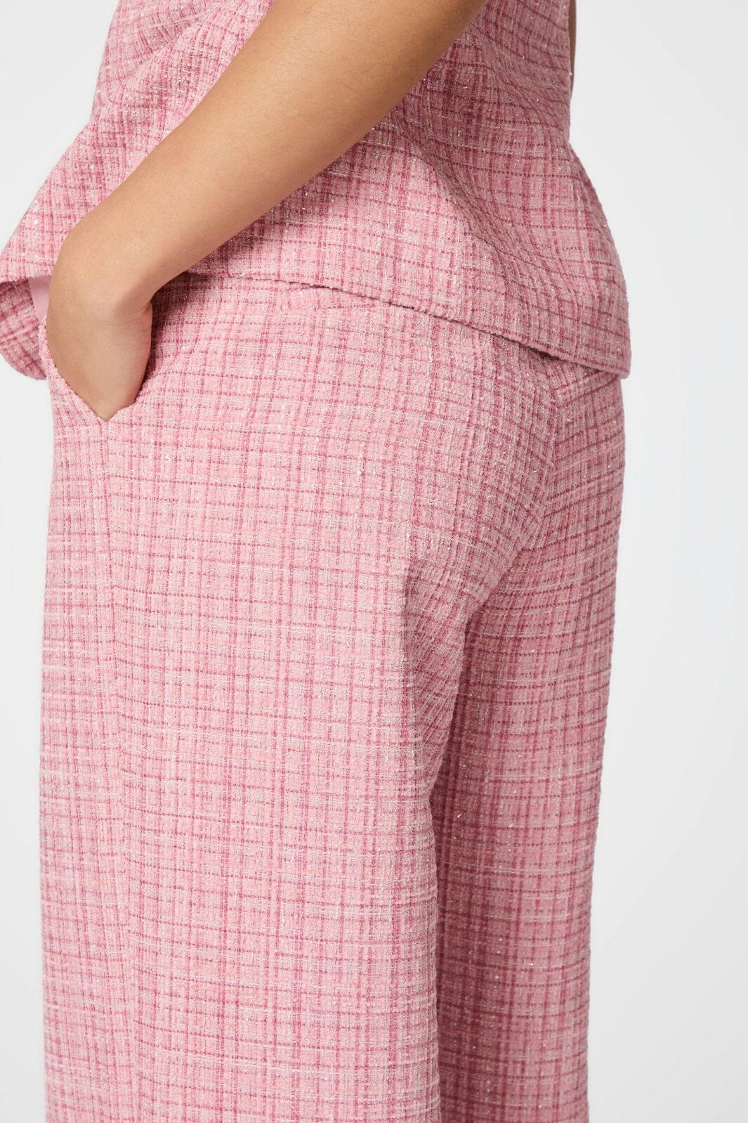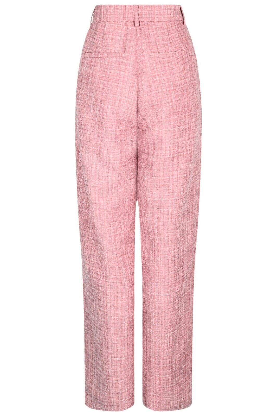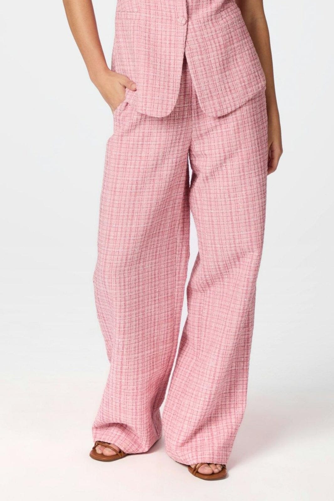 Lyserøde bukser fra Neo Noir i boucle-kvalitet. Bukserne har en høj talje og vide ben med en løs pasform. De er designet med knapper og et ternet mønster.