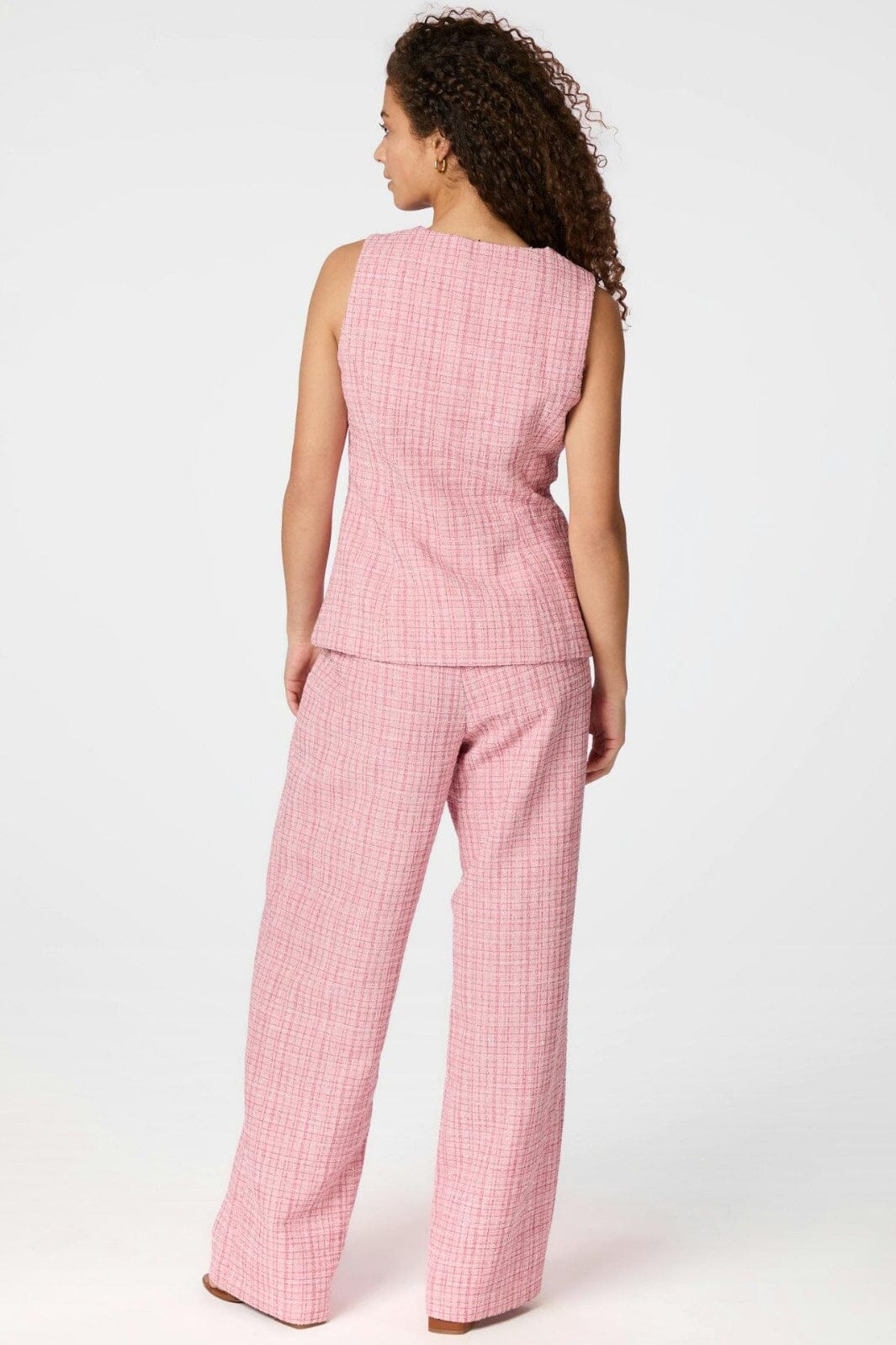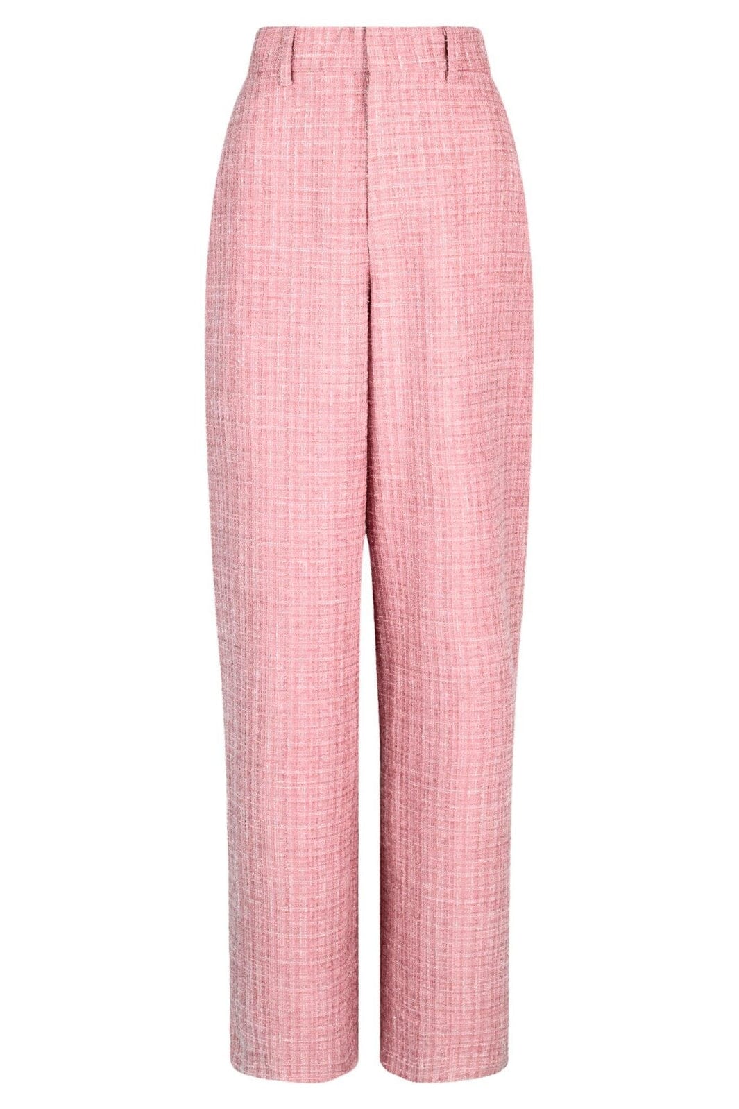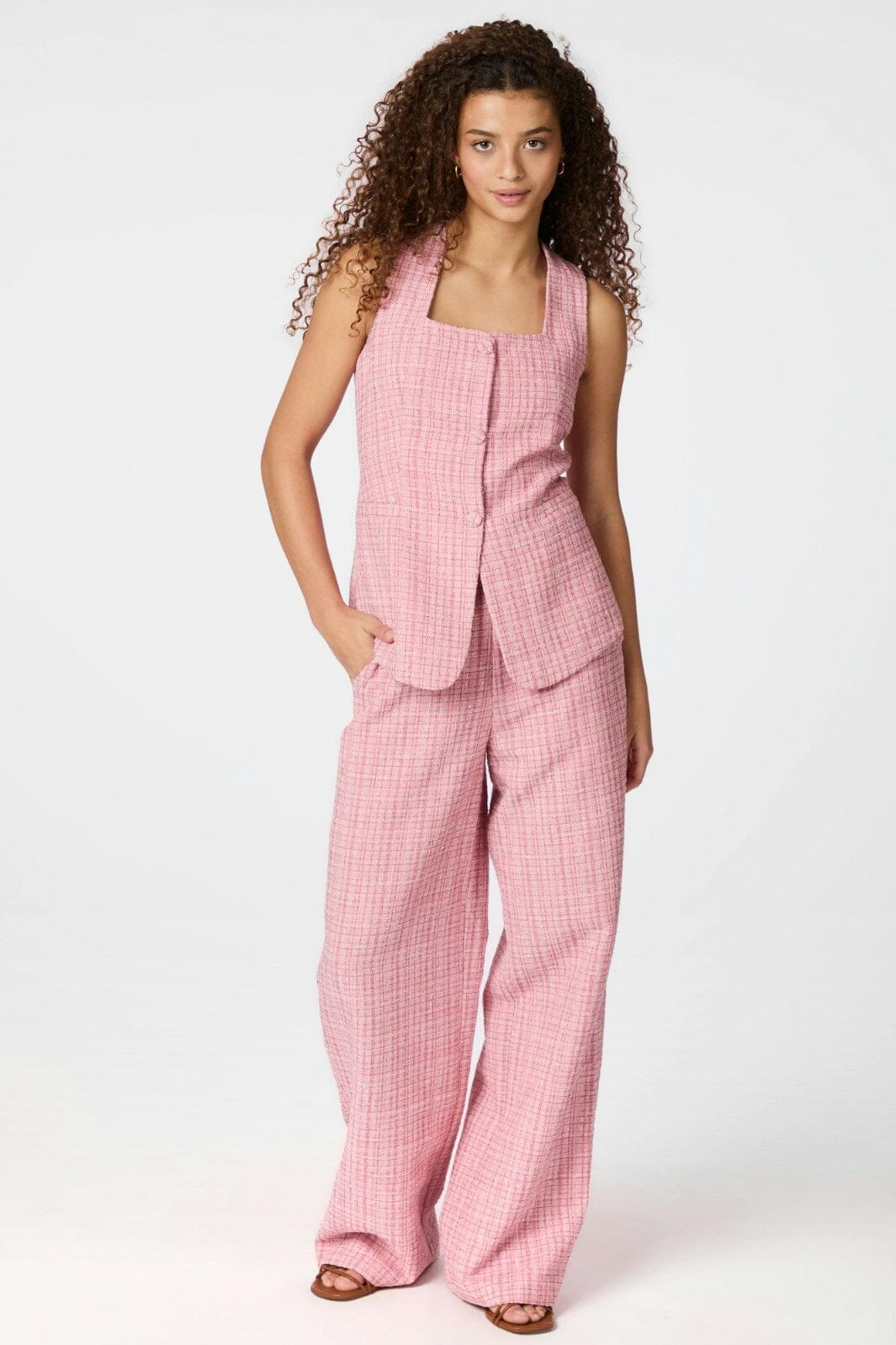 Lyserøde bukser fra Neo Noir i boucle-kvalitet. Bukserne har en høj talje og vide ben med en løs pasform. De er designet med knapper og et ternet mønster.