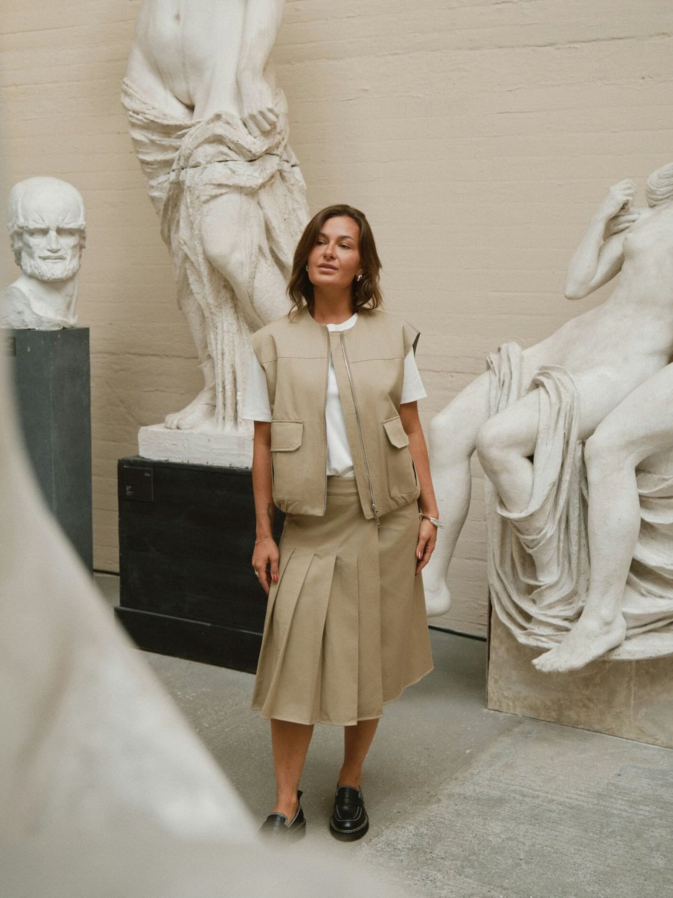 Ærmeløs vest fra Neo Noir i taupe. Den har en oversize pasform med ballon-effekt og store cargo-lommer på forsiden. Lynlås lukning og rund halsudskæring.