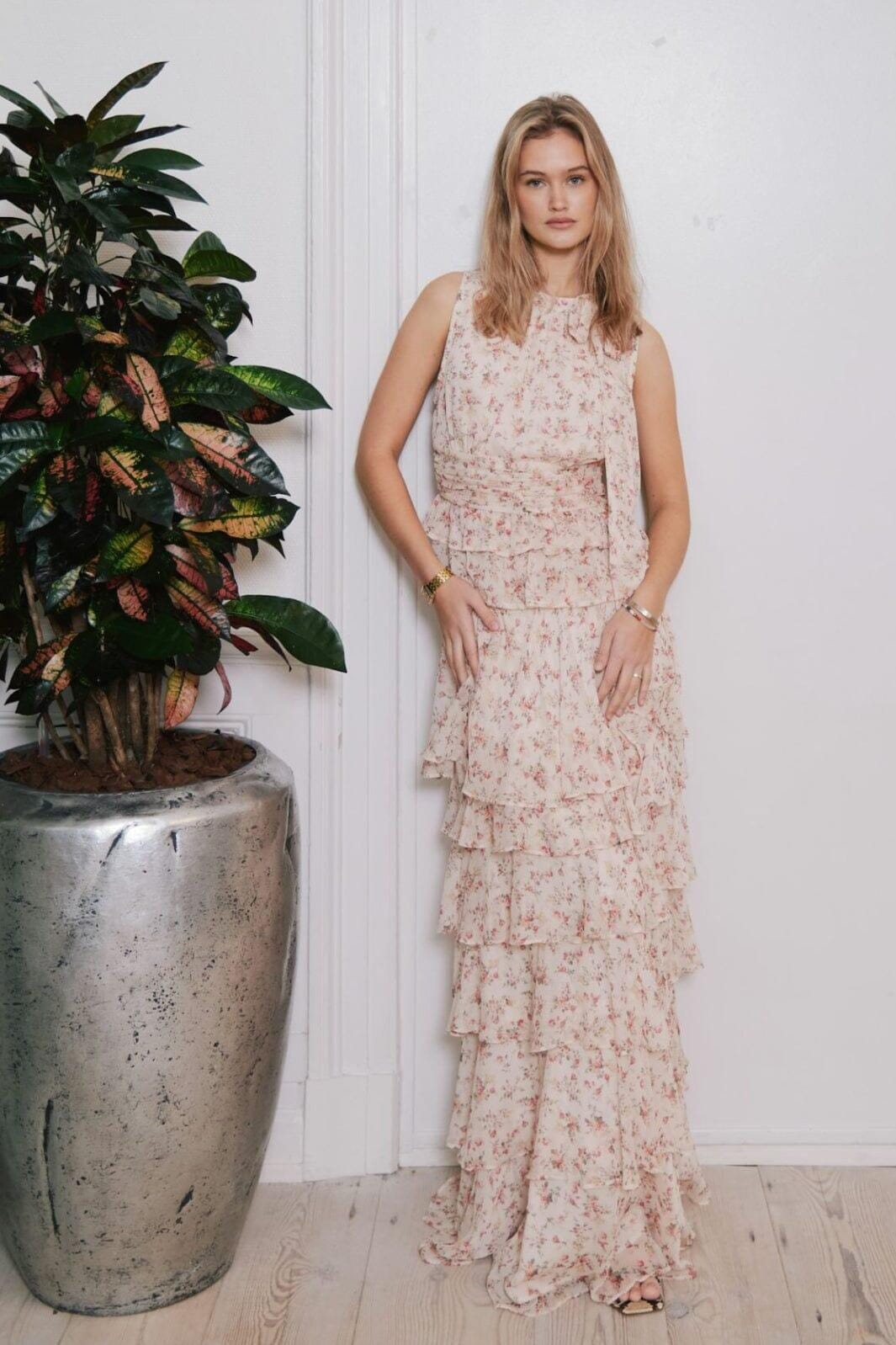 - Modellen er 176 cm høj og bærer størrelse 36