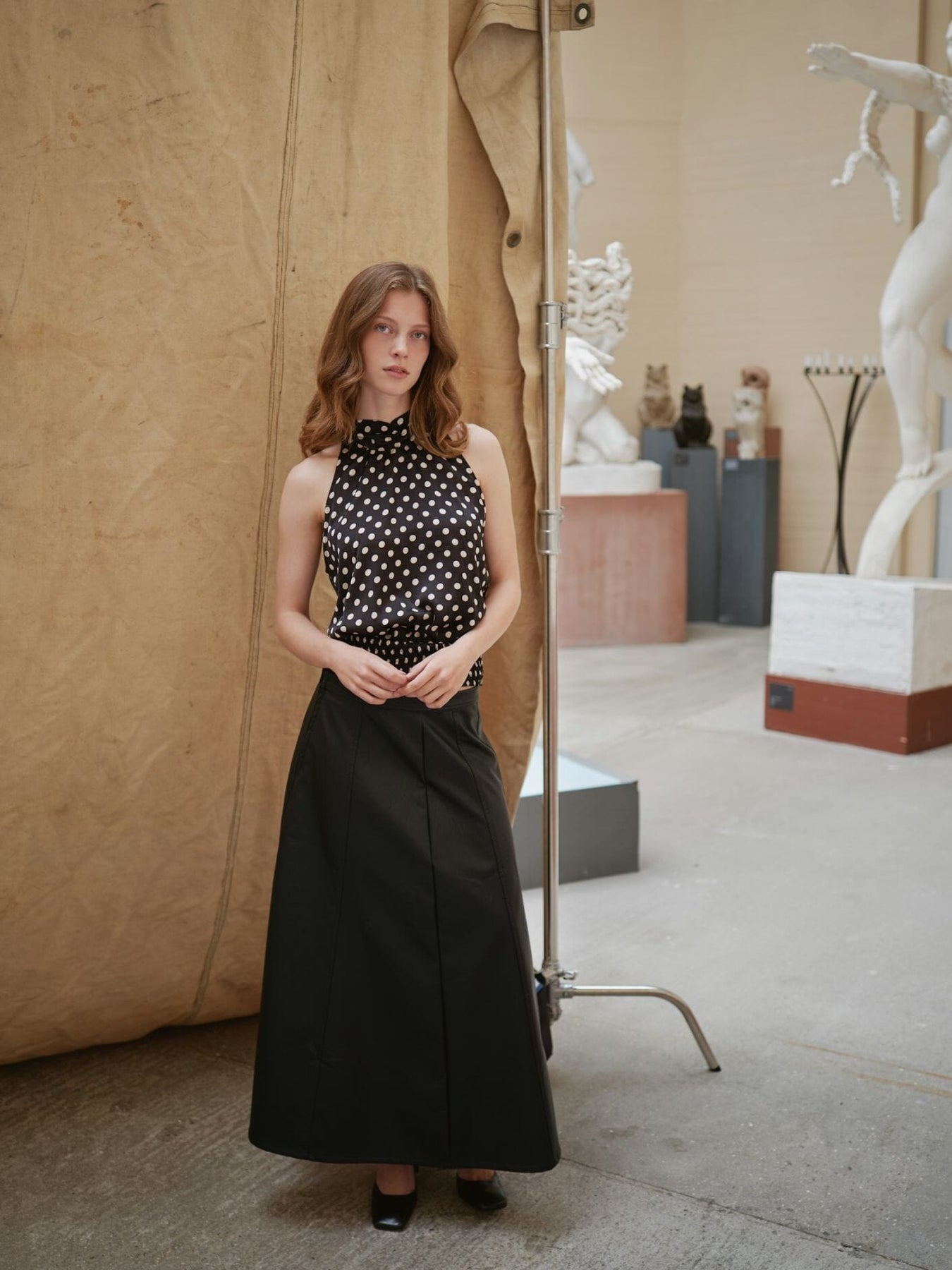 Sort nederdel fra Neo Noir i imiteret læder. Den A-formede nederdel har en høj talje og falder til anklerne.
