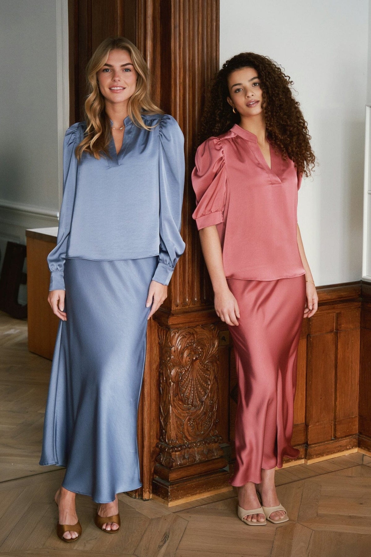 - Lange ærmer med rynker