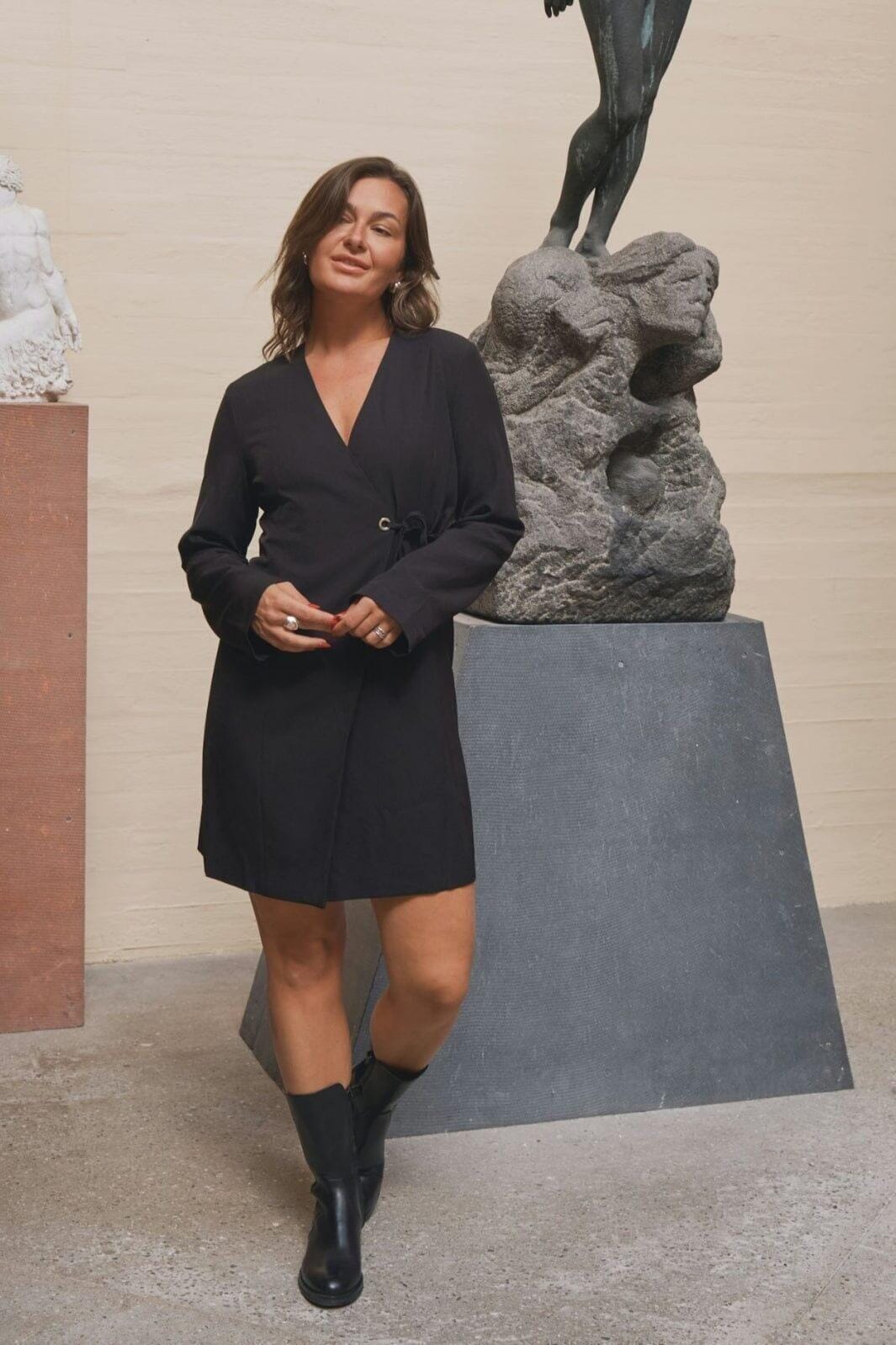 - Modellen er 176 cm høj og bærer størrelse 36