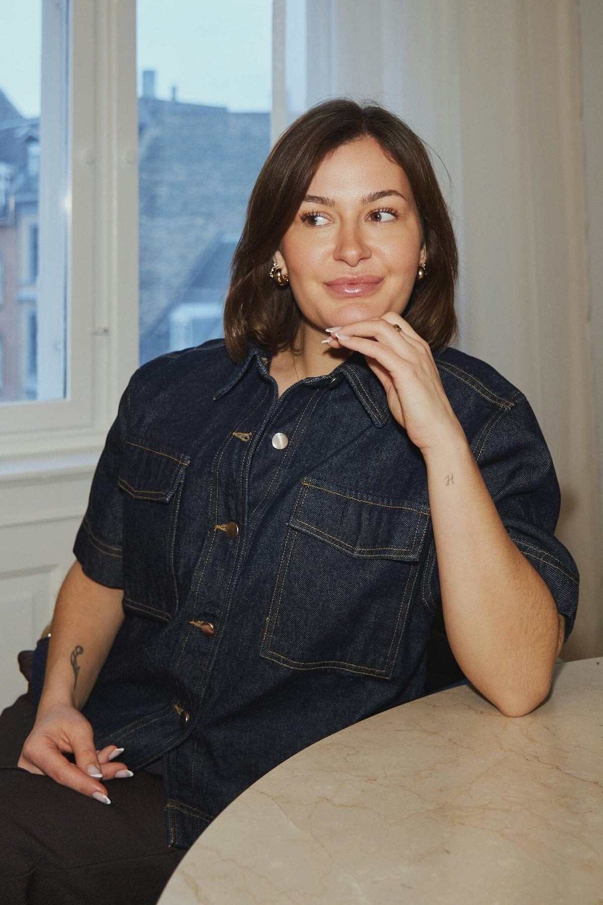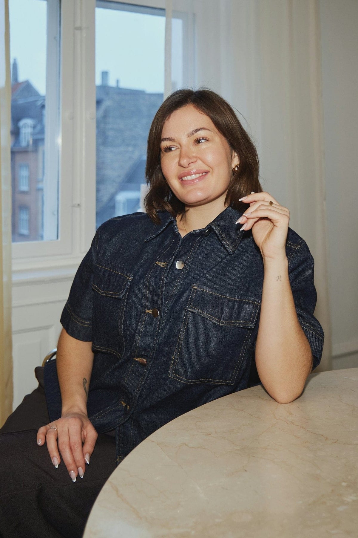 Mørkeblå denimskjorte fra Neo Noir. Skjorten har korte ærmer og en klassisk skjortekrave med knaplukning foran.