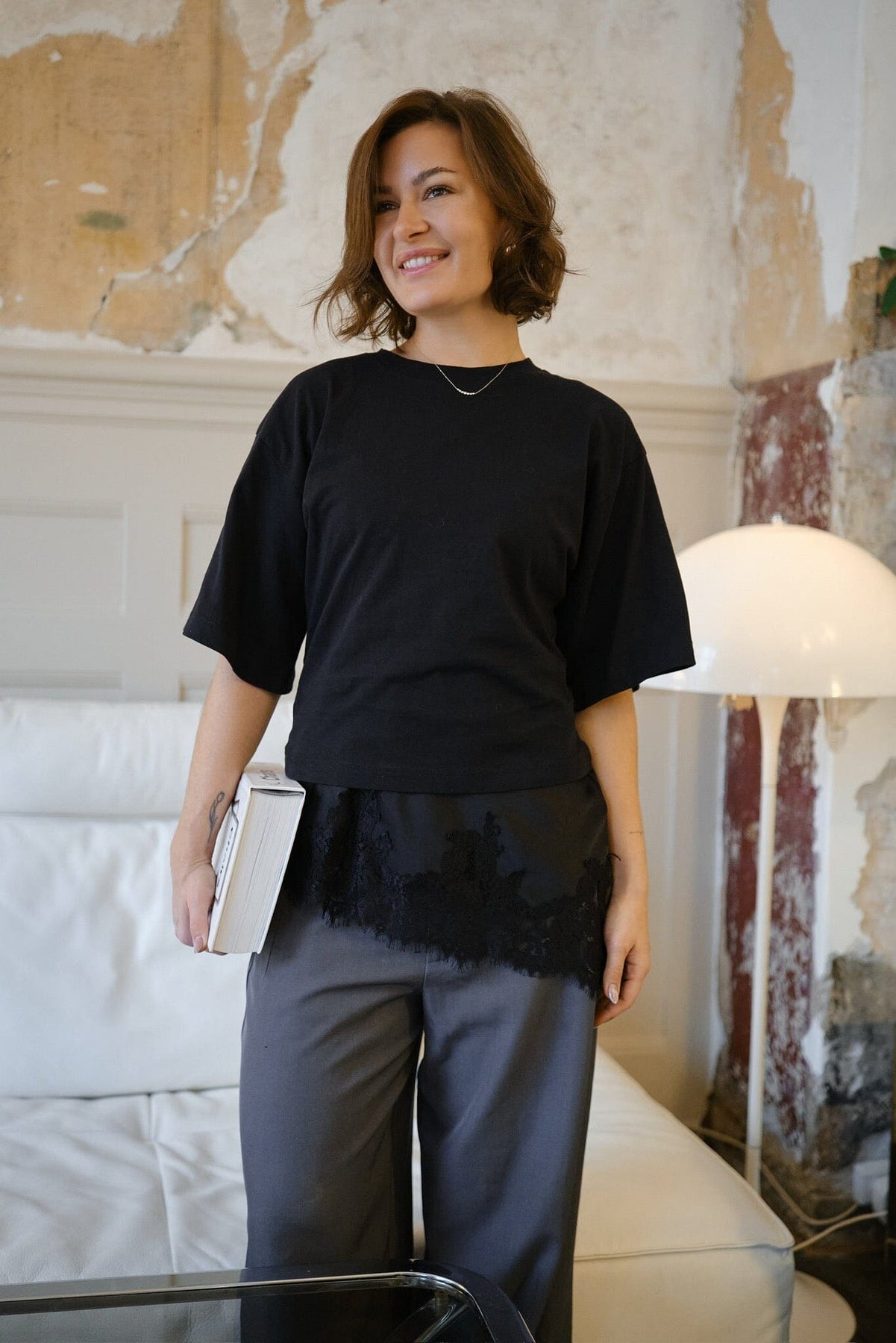 - V-udskæring med blondedetaljer