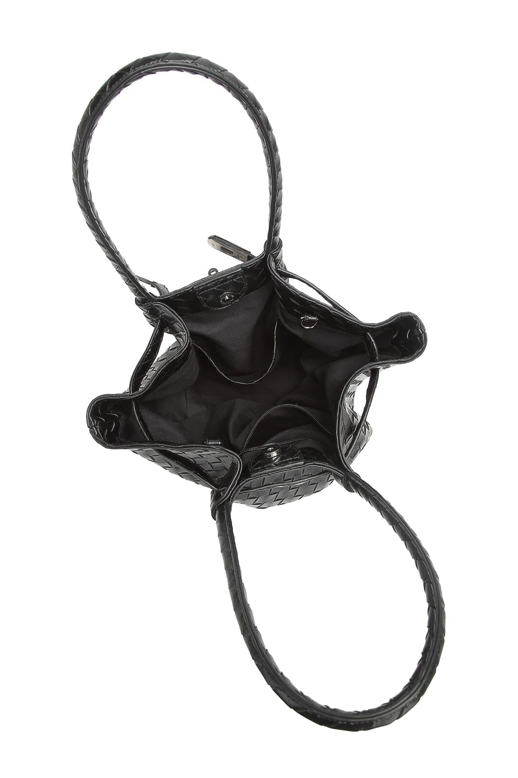 Sort taske fra Noella, lavet af 100 % polyurethan med et flettet design over hele overfladen. Tasken har to lange hanke og detaljer i børstet sølv.