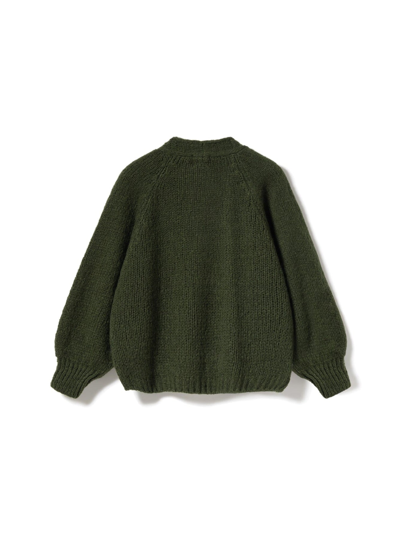 Strikket cardigan fra Noella i mørkegrøn. Den har en løs pasform med pufærmer og åben front, strikket i en blanding af akryl, uld, nylon og mohair.