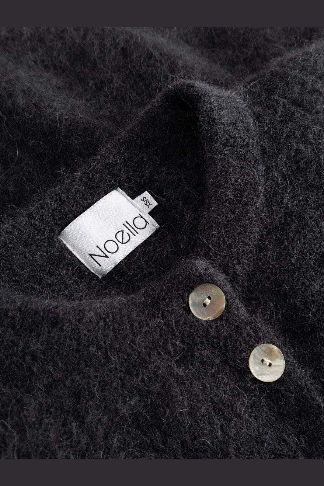 Mørkegrå strikket cardigan fra Noella med puffede ærmer og perleknapper. Den løse pasform og den bløde materialeblanding giver en behagelig cardigan til hverdagen.