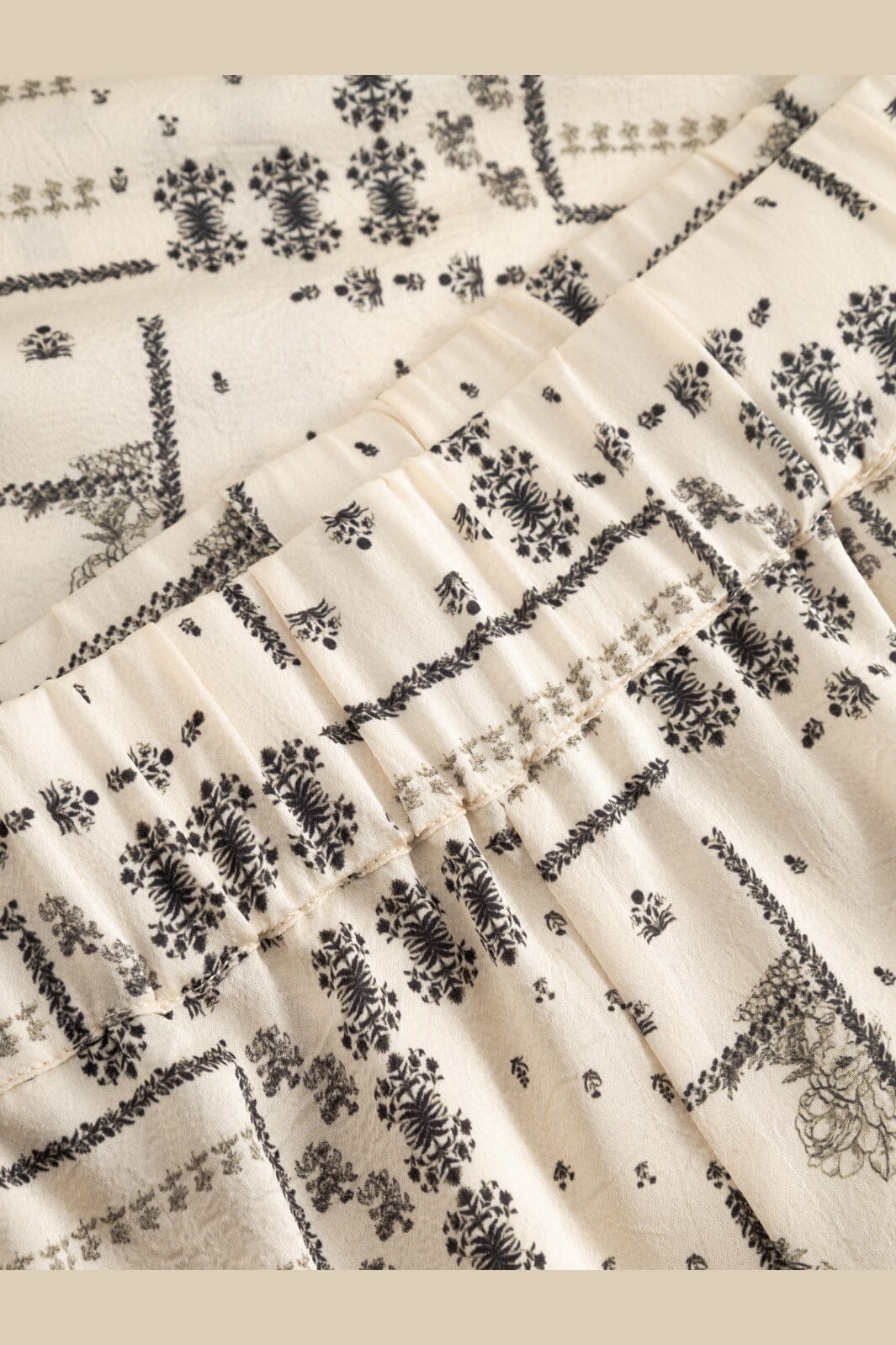 Bukser fra Noella i en elfenbensfarvet nuance med geometrisk og blomsterprint. Bukserne har bred benform og høj talje.