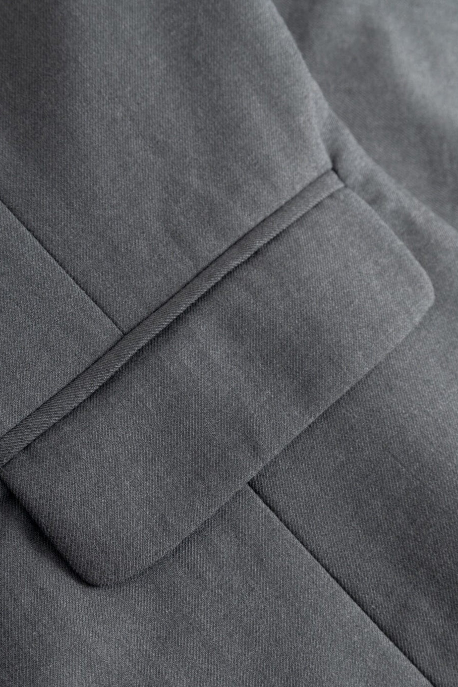 Grå vest fra Noella med tætsiddende silhuet og rund halsudskæring. Vesten har store knapper på fronten og to praktiske lommer. Dekorative syninger fremhæver vestens skræddersyede snit.