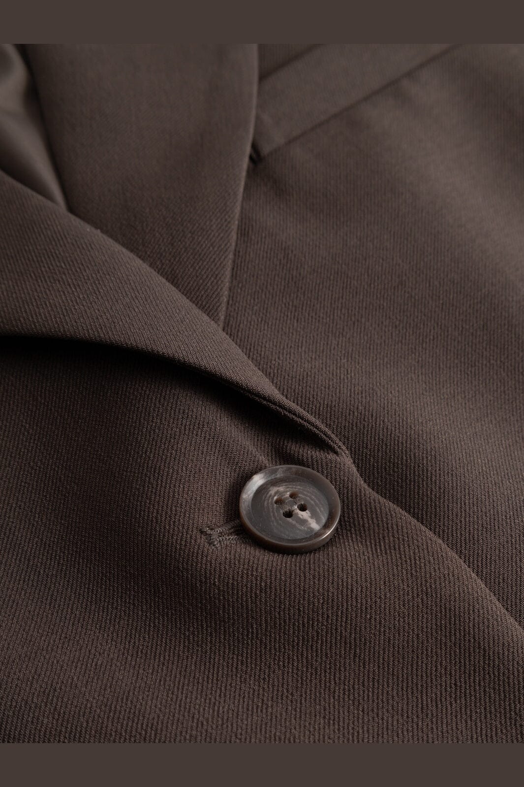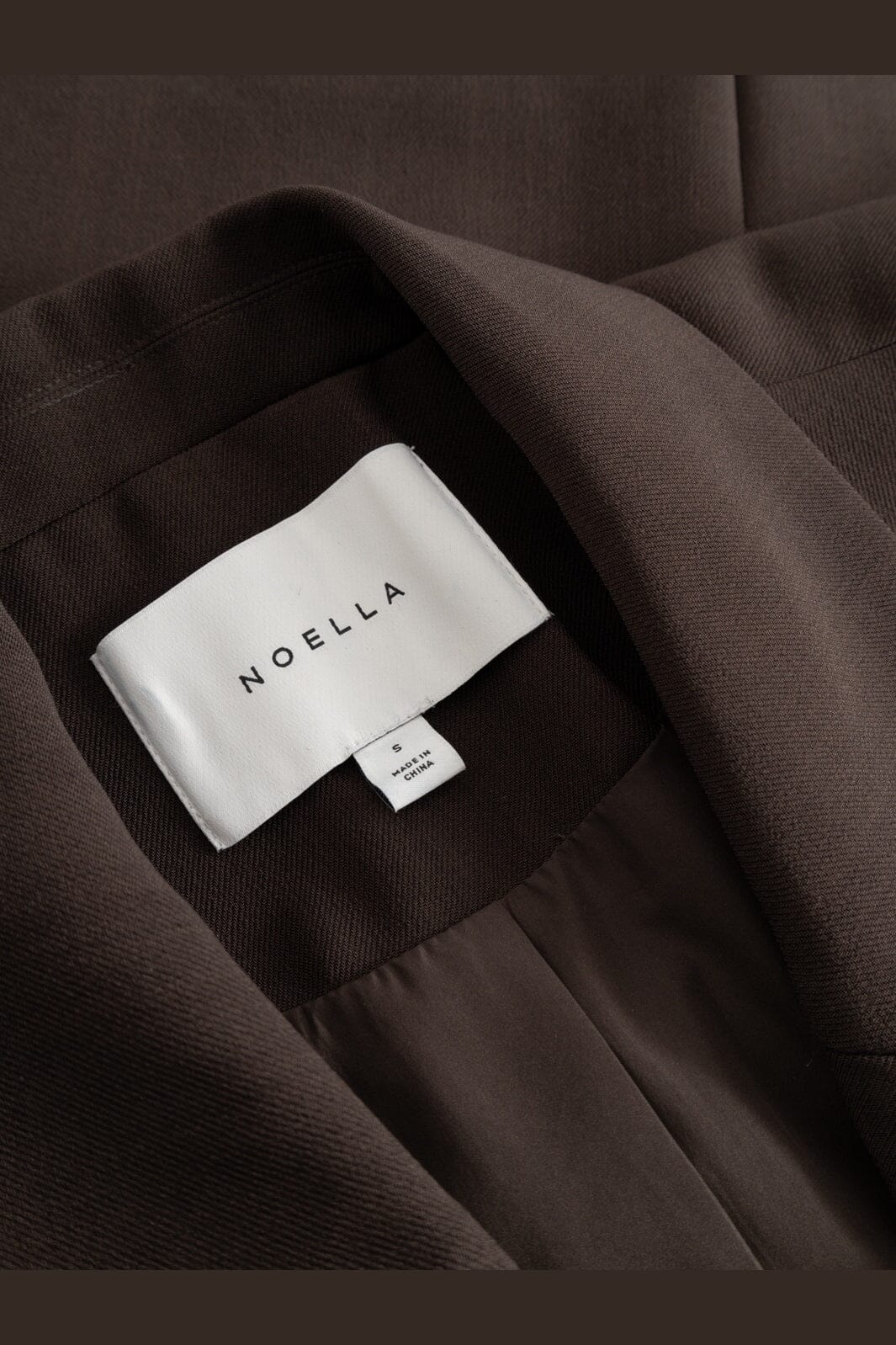 Kort blazer fra Noella i chokoladebrun farve. Blazeren har en oversized pasform og en kort længde.