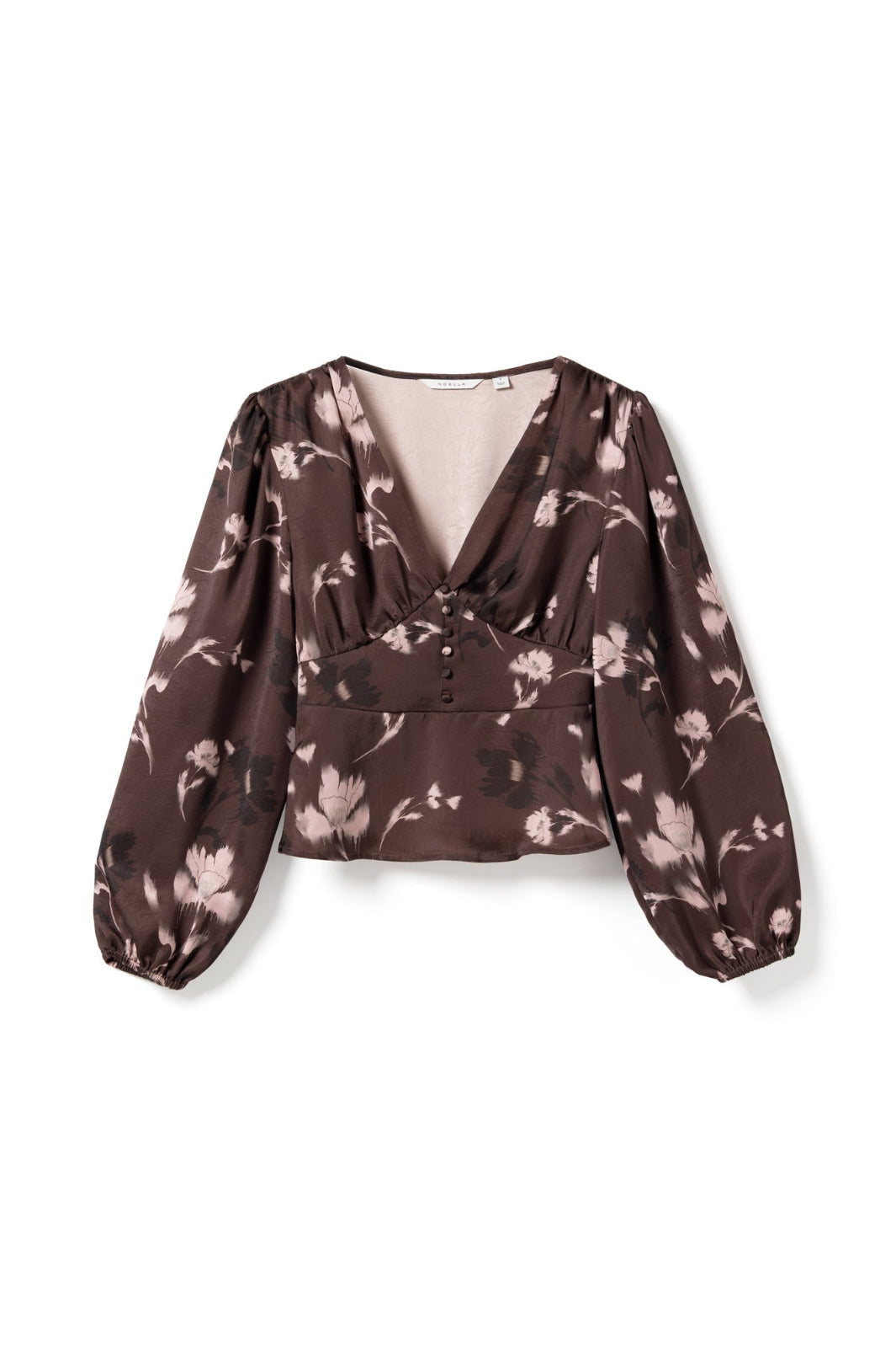 Bluse fra Noella med blomsterprint i bordeaux og lyserøde nuancer. Blusen passer til både afslappede hverdage og festlige lejligheder.
