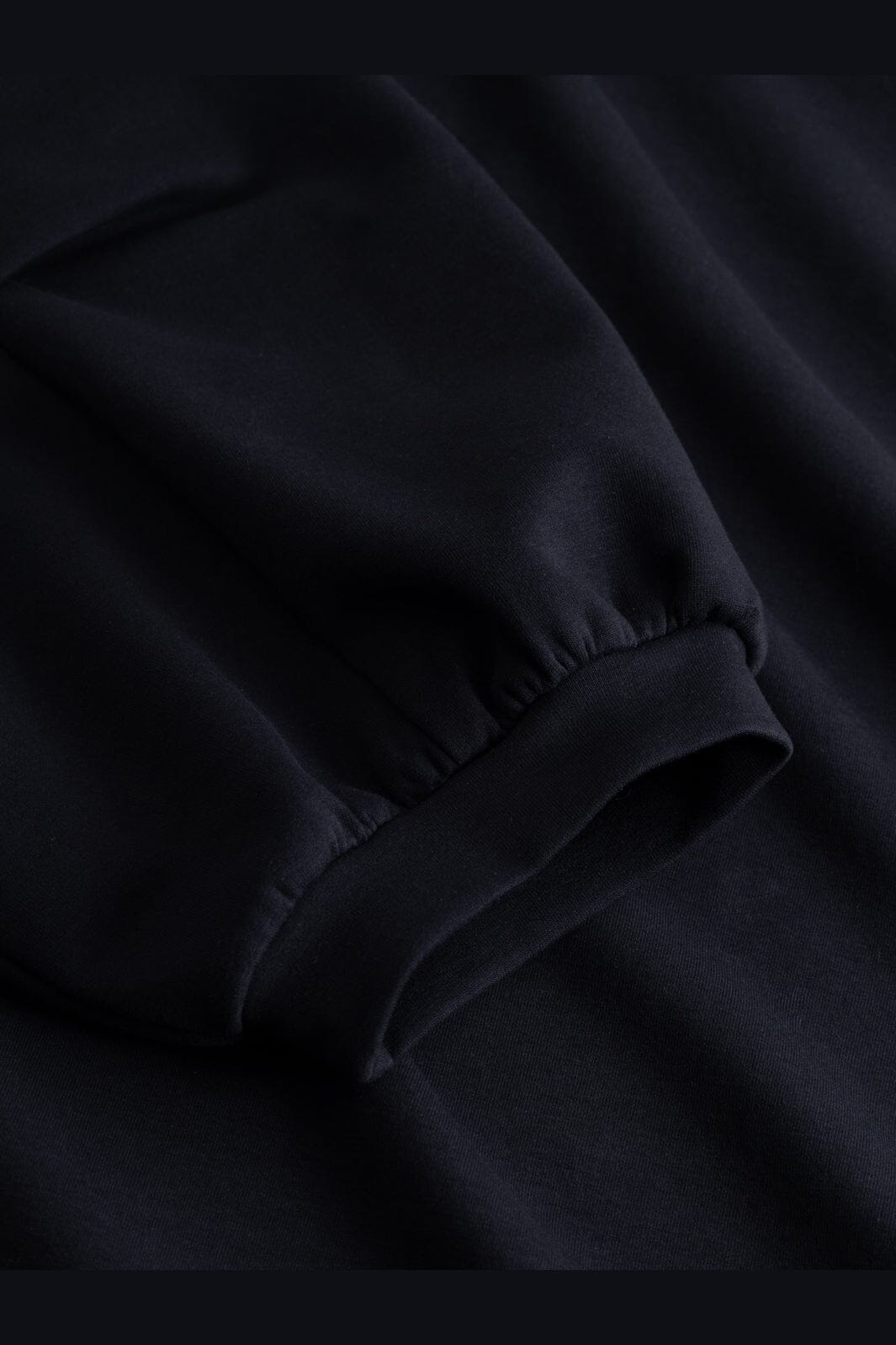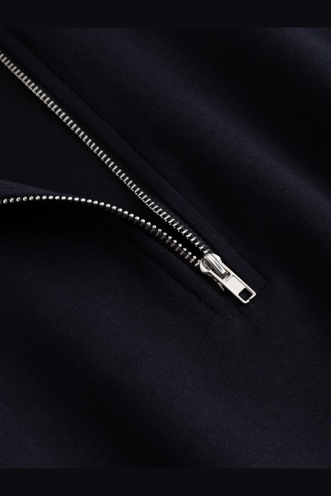 Mørkeblå top fra Noella, lavet af 100 % polyester. Toppen har en høj hals med halv lynlås og lange ærmer med elastiske manchetter.