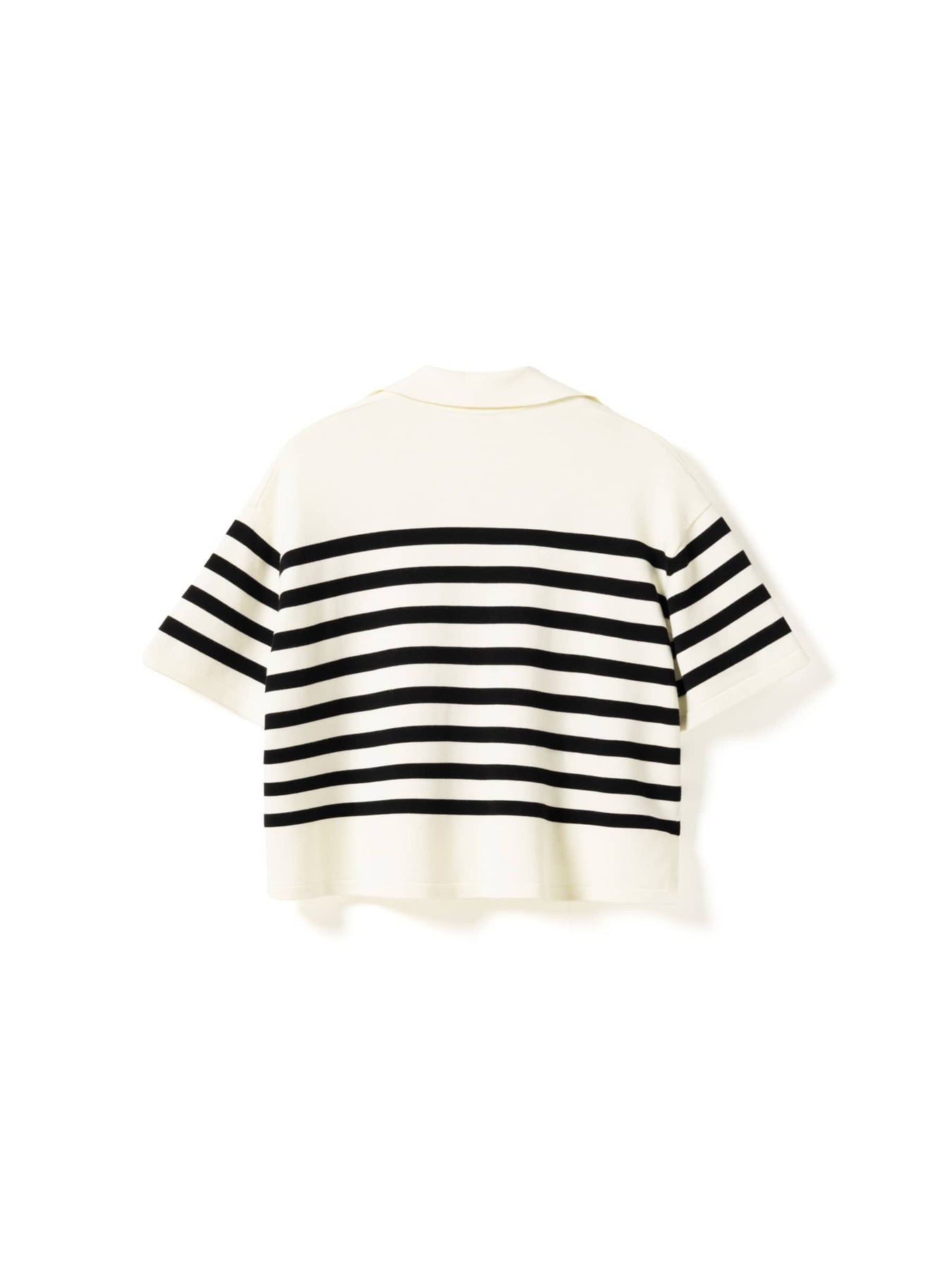 Stribet strik fra Noella, lavet af 72 % viskose og 28 % polyester. Trøjen har sorte og hvide vandrette striber med en polo-krave og forlomme.