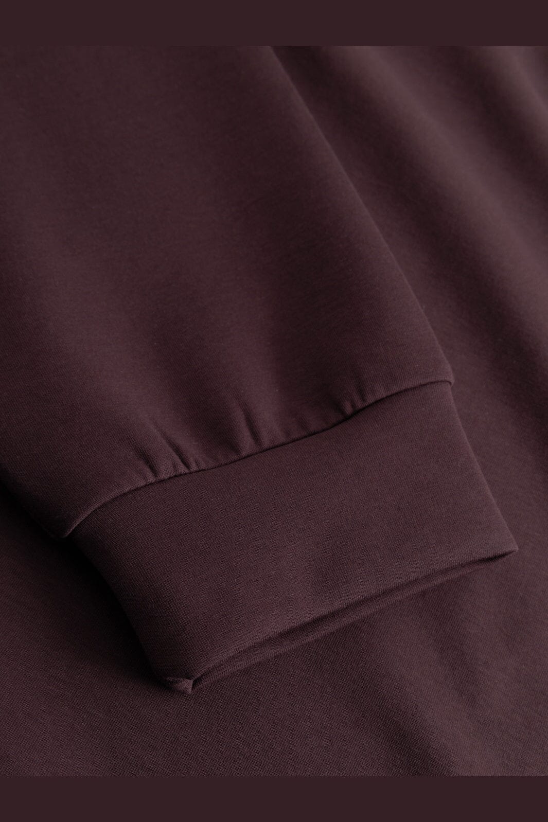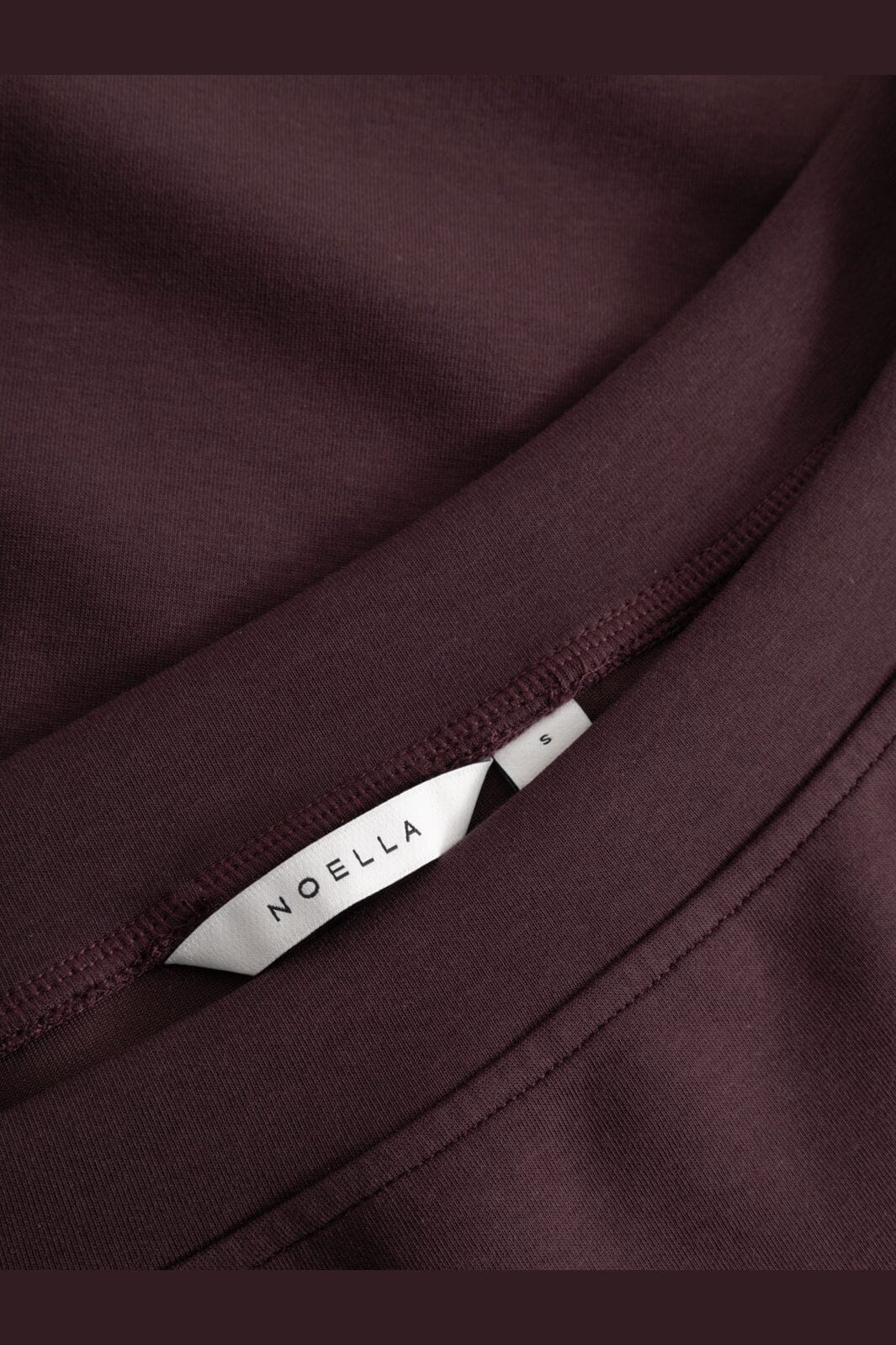 Vinrød top fra Noella med off-shoulder udskæring og lange ærmer. Toppen har en løs, oversized pasform og bred bådudskæring, der falder naturligt over skuldrene.