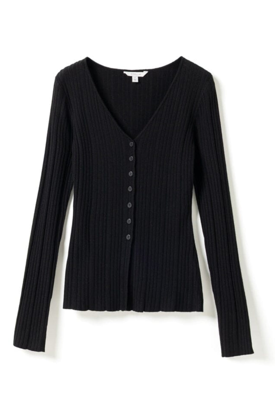 Sort ribbet top fra Noella, strikket i 100 % viskose. Den sorte farve og det enkle design gør den nem at kombinere til hverdagsbrug.