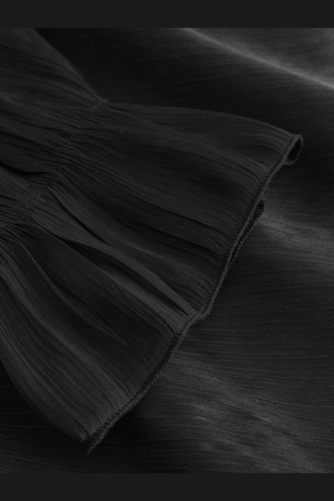 Sort bluse fra Noella med off-shoulder design og tynde stropper. Blusen har lange ærmer med elastiske manchetter og en stor flæse ved brystet.