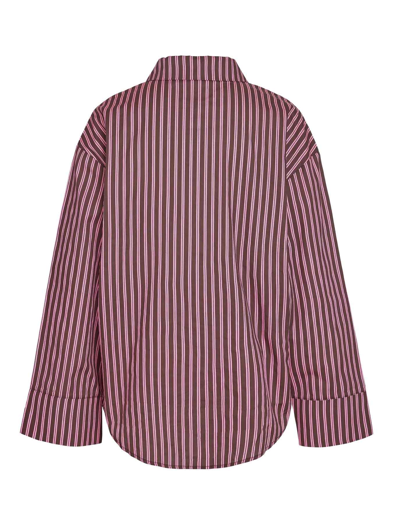 Stribet skjorte fra Noisy May med et mønster i bordeaux, lyserød og hvid. Skjorten har en klassisk krave, brystlomme og knaplukning foran.