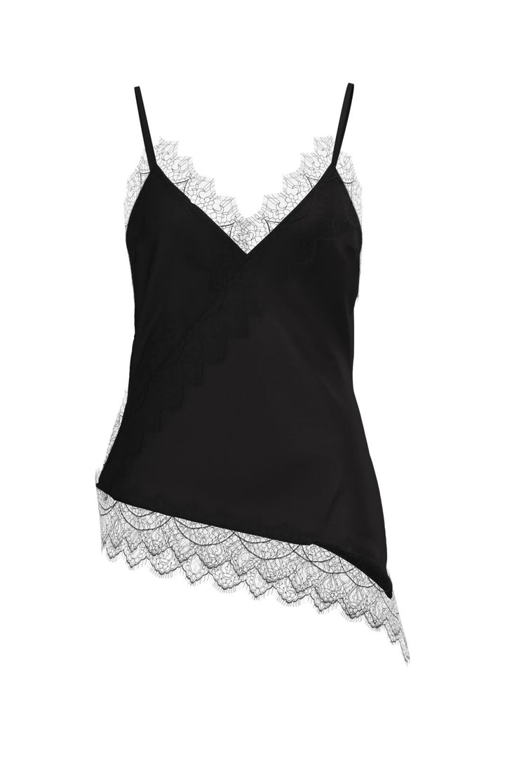 Sort slå-om-nederdel fra Noisy May med blondedetaljer. Nederdelen er lavet af 100 % polyamid og har en skinnende overflade.